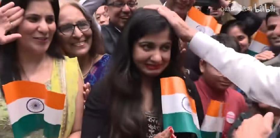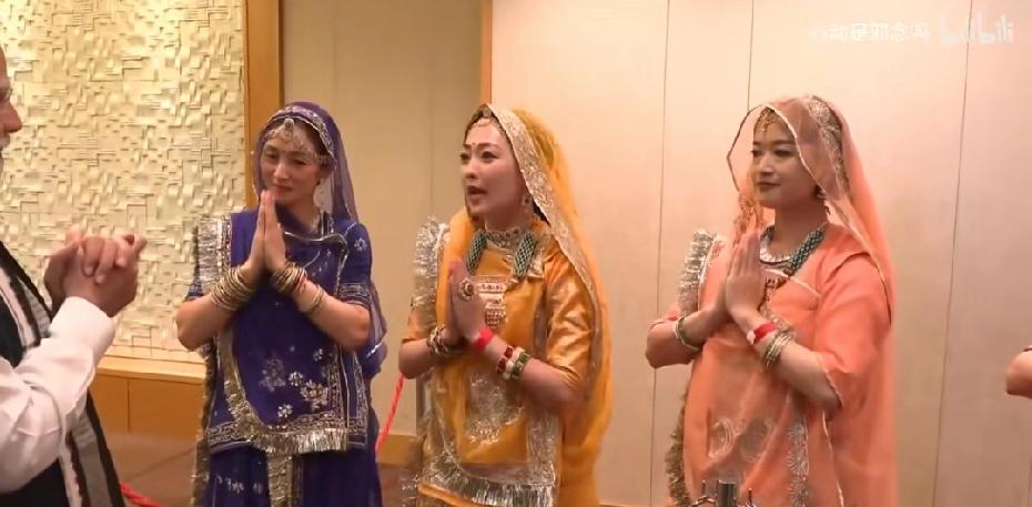 哭笑不得!一笑醒来日象共舞了 小日子为欢迎莫迪老仙,穿上阿三服饰,那感觉一看衣服就是借来的,不伦不类,不知道老仙当场会不会想,这小身板穿我们的戏服就是一种玷污? 有意思的是,莫迪老仙走到印裔女性面前,将那只黑乎乎的手放到她头上的那一刻(图2),这个摸头杀动作让女孩哭笑不得…… 不过,我感觉她想哭,因为,她一定想,你真以为自己法力无边?我是收钱干活的,你这摸头的钱他们没付款啊! 玩笑归玩笑,莫迪忘记了二战历史,与小日子为伍,我觉得甚好,既然阿三人口多,小日子老龄化,那么日象共舞可以产生新物种,将来是象做主,还是小日子做主,就看谁基因强大了,您说对吧?