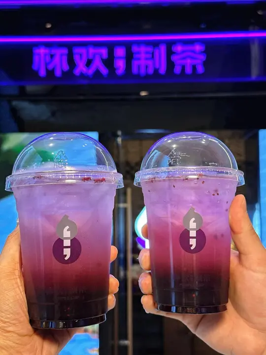 家人们 也泰会了吧 七夕限定款牛郎饮品 渐变的视觉感! 像是把唯美的紫色银河装进了杯子里