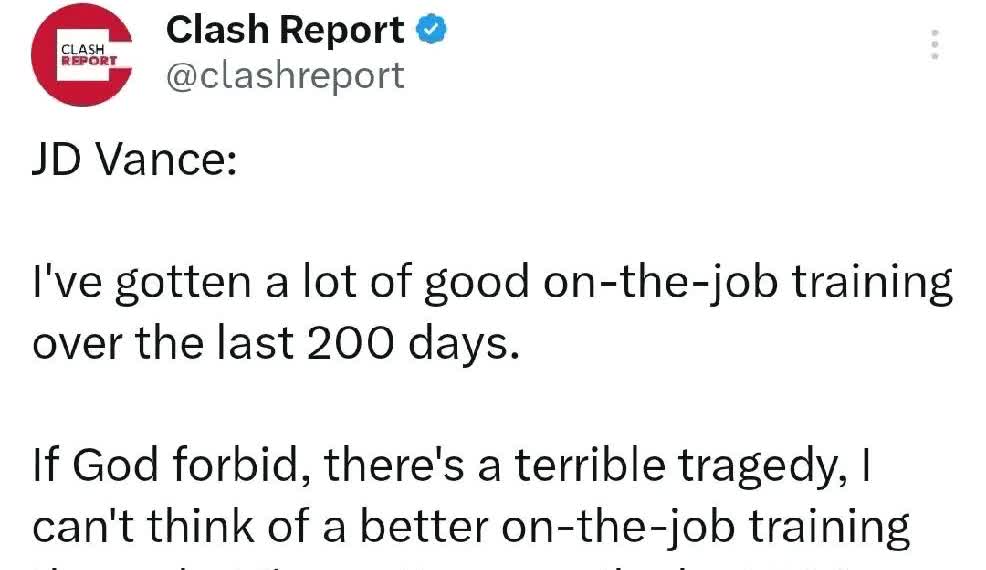 8月29日,福克斯新闻报道:“JD万斯在今日美国专访中称,若特朗普遭遇‘可怕悲剧’或健康出问题,已接受200天在职培训的他准备接任总统,不过,万斯同时强调特朗普当下健康状况极好、精力惊人,但部分媒体断章取义,只报道他准备接任,却忽略对特朗普健康状况良好的描述,容易误导公众,造成不必要的猜测与误解。” [机智]美媒断章取义的老毛病,可真是积重难返!JD万斯明明着重强调特朗普健康状况“极好”,却被某些媒体选择性无视,独独揪出“准备接任总统”大做文章,是觉得大众就爱看这种博眼球的“劲爆”消息?还是自家编辑理解能力有限,只能get到半句重点?为了流量放弃事实,把新闻当“文字游戏”随意编排,长此以往,公信力怕是要碎一地,到时候大家看新闻,都得自带“辟谣滤镜”喽! 有评论表示,特朗普任期内“出问题”,万斯才有机会当回总统过过瘾,否则,下届总统竞选轮不到他,白宫大内总管鲁比奥的优势比他强太多了!