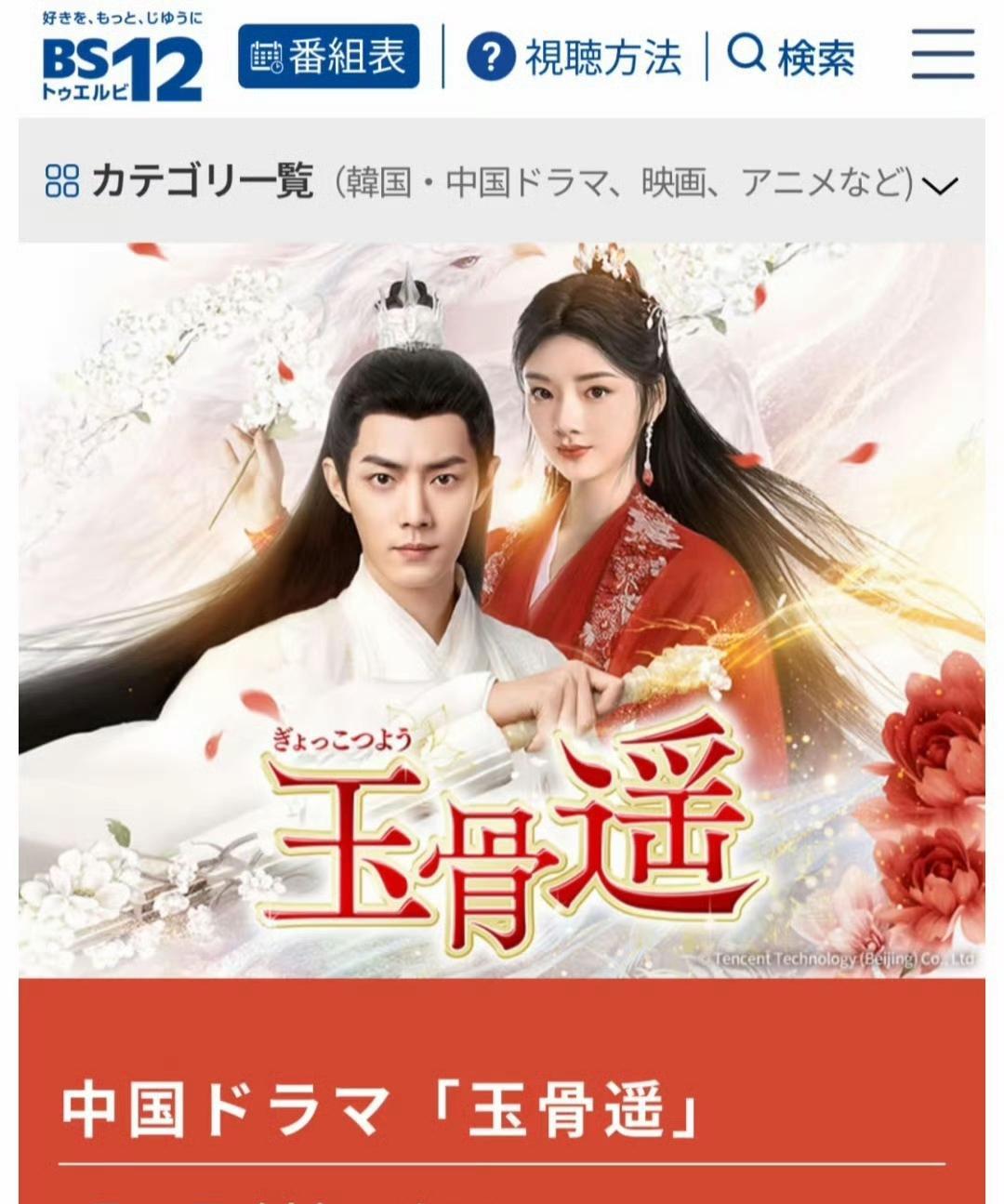 哇偶,@肖战继续闯世界,《玉骨遥》在日本又要上星播出了!《玉骨遥》自9月17日起将在日本BS12频道播出! 9月17日(周三) 7:00,周一到周五播出。 BS12 TwellV是一个覆盖日本全国、免费收看、内容综合且带有自身特色的卫星电视频道。 日媒称肖战为“国宝级帅哥”,《玉骨遥》已经在日本多次上星播出,同时覆盖流媒体及影碟销售。 #肖战玉骨遥##肖战#