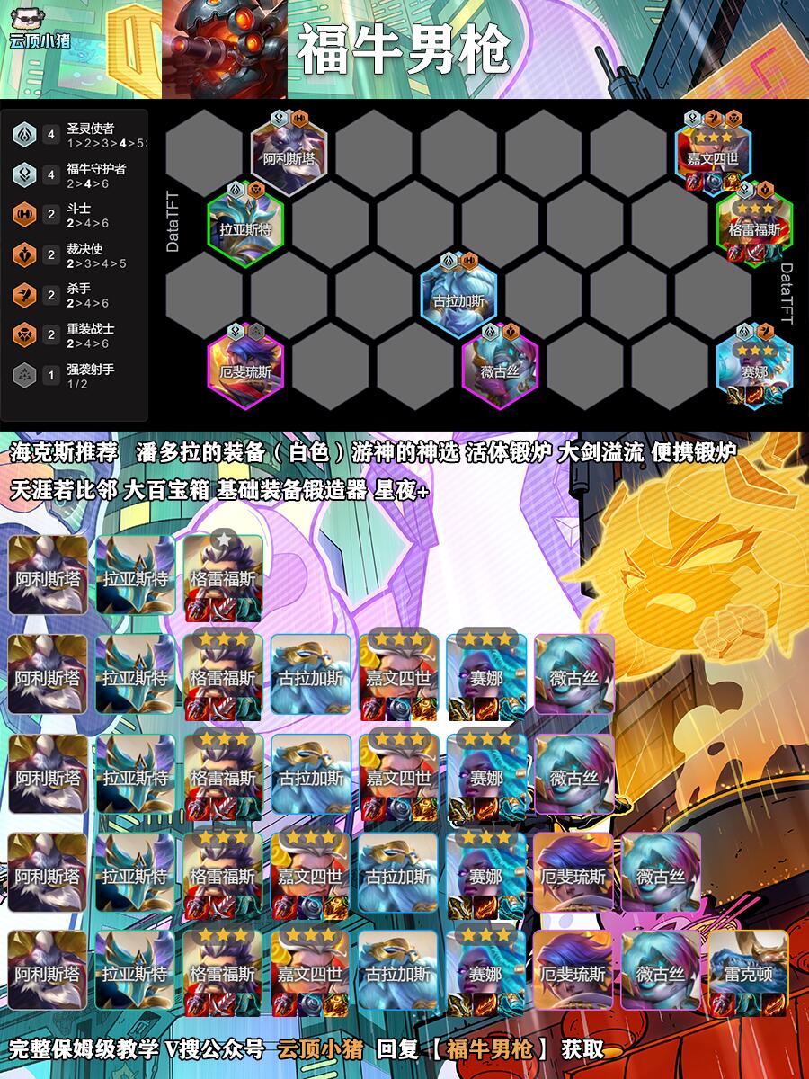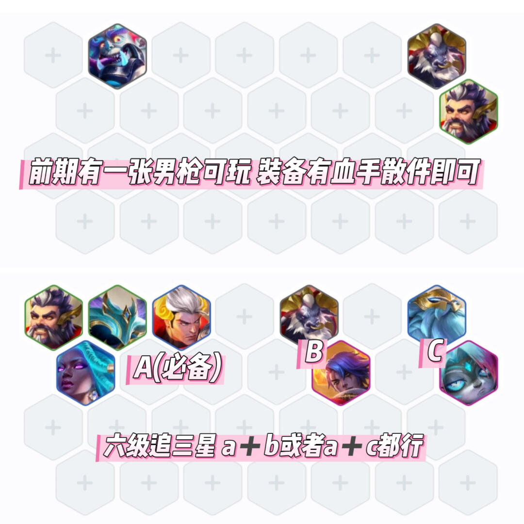 一、福牛九五:低分段冲分首选战术 • 人口运营核心:9级即毕业,无需硬上10级!9级锁定扎克抽被动,强度直接拉满 • 外援顶配组合:扎克+盖伦为双核心,补位推荐女坦/可酷博,前排硬度瞬间拉满 二、高分段男枪冲分秘籍 • 开局天胡信号:男枪+血手直接冲! early占坑抢独家,成型快到对手没脾气 • 同行对冲技巧:人造人/男枪版本T0,手握智慧末刃/风衣/九头蛇等神器,搭配蓝色妮蔻硬刚不虚 三、运营节奏表(60层被动登顶标配) ▶ 九五流速升节奏 2-1拉4 →2-2拉5 →3-1拉6 →3-5拉7 →4-1拉8 →4-5上9(暂不抽卡) 5-1起隔波抽被动,优先刷出扎克再all in,避免没被动层数+经济血崩! ▶ 男枪三星速成思路 • 前中期死保经济:2-7升级2次→3-1升级3次(3-2自动跳6) • 抽卡黄金节点:3-2抽4次→3-3抽5次→3-5抽6次→3-7抽7次→4-1抽8次 基本能三星,被动也吃到32层了 • 三星男枪锁血后再升人口,8级停手不上9,隔波抽被动稳保连胜 💡 核心逻辑:低分段靠九五吃烂分,高分段用男枪抢节奏,神器和妮蔻是对冲同行的关键!学会这套运营,把把稳进前四~