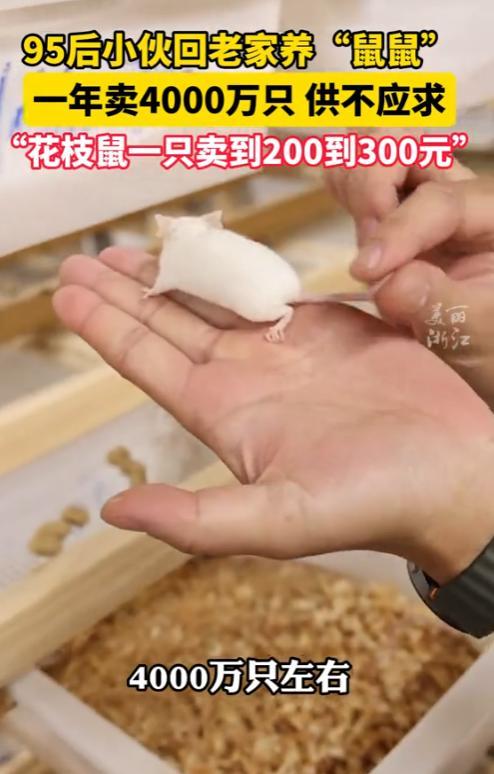 “这简直是捡钱啊!”8月27日,浙江湖州,一名95后小伙子回乡养鼠,一年能卖出去4000万只,供不应求,他直言养殖虽然不起眼,但是好好养利润一点都不低!网友:不管干啥都得努力才能致富。 小伙子一开始回村养鼠时,村里好多人都不理解,觉得养老鼠又脏又不起眼,能有啥出息,可小伙子不管这些,一门心思扑在养殖上。 他养的不是普通老鼠,是花枝鼠和小白鼠,这些老鼠看着干净,用途还不少,能当宠物,也能用于科研实验,市场需求大得很,别小看这些小老鼠,身价可不低,平时一只能卖到200块,行情好的时候能卖到300块。 小伙子把养殖场打理得井井有条,从培育到喂养,再到卫生防疫,每一步都做得很细致,他还专门研究市场需求,根据客户的要求调整,慢慢的,订单越来越多,一年下来竟然能卖出4000万只,根本不愁卖。 有人问小伙子养鼠赚不赚钱,他笑着说:“这行当看着不起眼,但好好干,利润一点都不低”,现在他一年能挣上百万,甚至朝着千万的目标靠近,比当初在城里坐办公室强多了。 最近他还计划扩大规模,把产能提升到原来的四倍以上,想把这不起眼的生意做得更大,乡亲们看着小伙子的日子越过越红火,都羡慕不已,不管干啥都得努力才能致富。 这小伙子肯放下身段回乡创业,还能把小事做好,活该他赚钱,现在年轻人创业就得有这股劲,不跟风,找对方向踏实干,总能出成绩。 不是只有光鲜亮丽的工作才能赚钱,只要选对路子,肯付出努力,哪怕是别人看不上的小行当,也能闯出一片天,毕竟,天上不会掉馅饼,真正的捡钱,都是靠一步一个脚印干出来的。 信息来源:《95后小伙返乡养鼠鼠一年卖4000万只计划将产能提升至原来的四倍以上。》美丽浙江