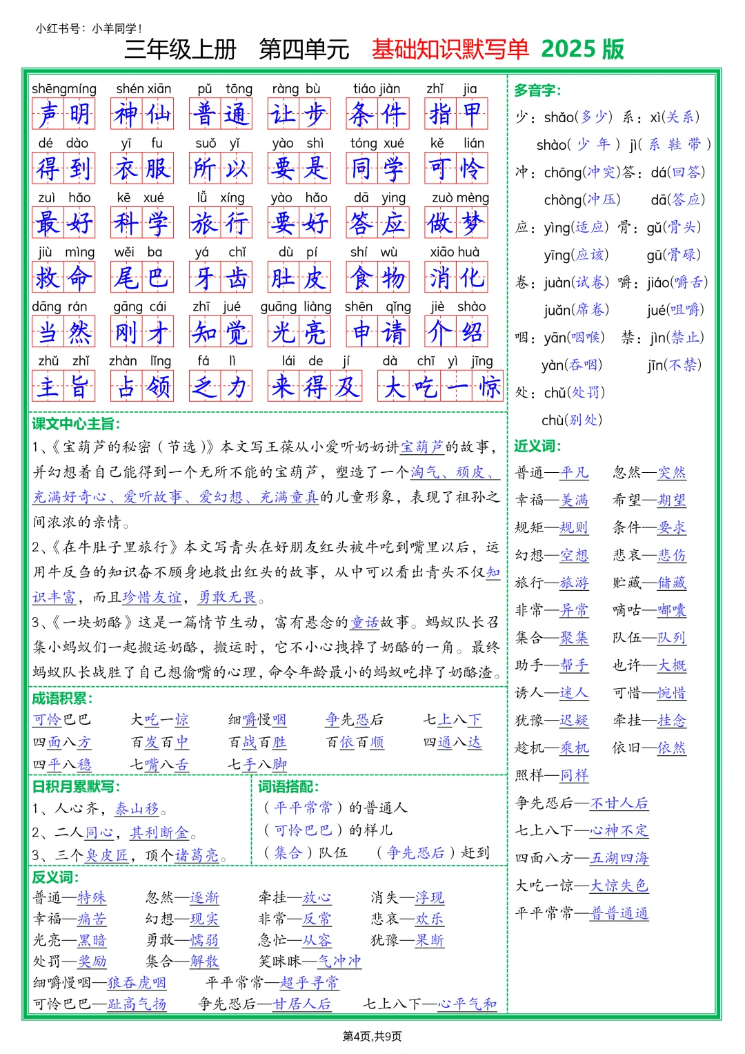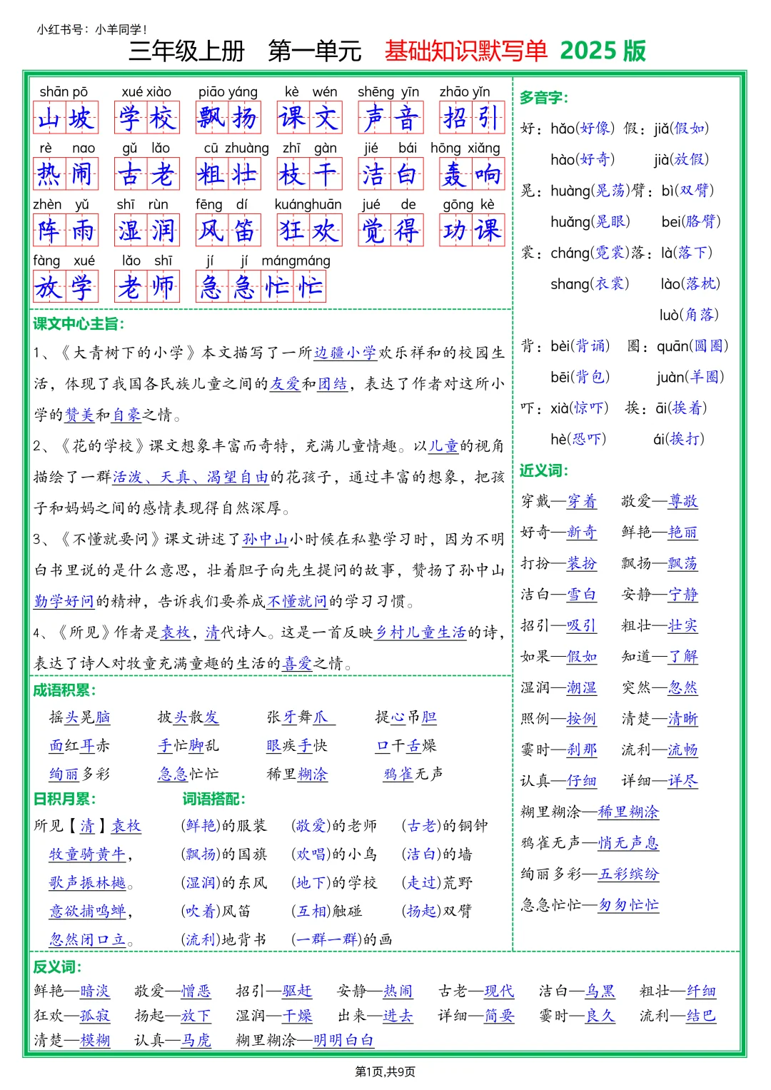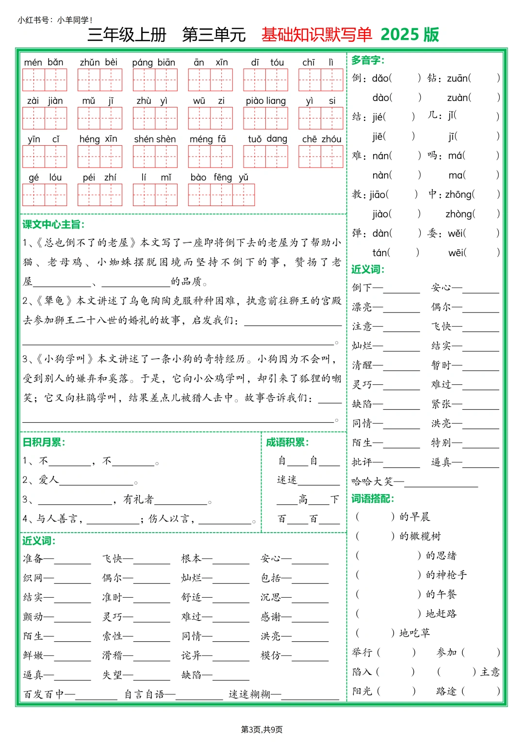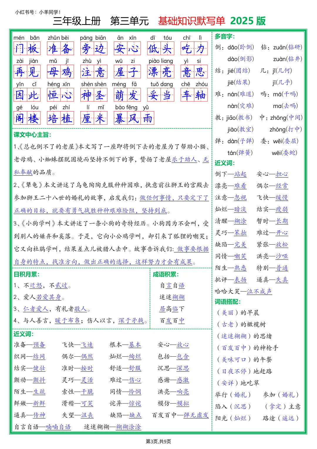 [两颗心R]开学倒计时!三年级宝子们的语文基础过关神器来咯~