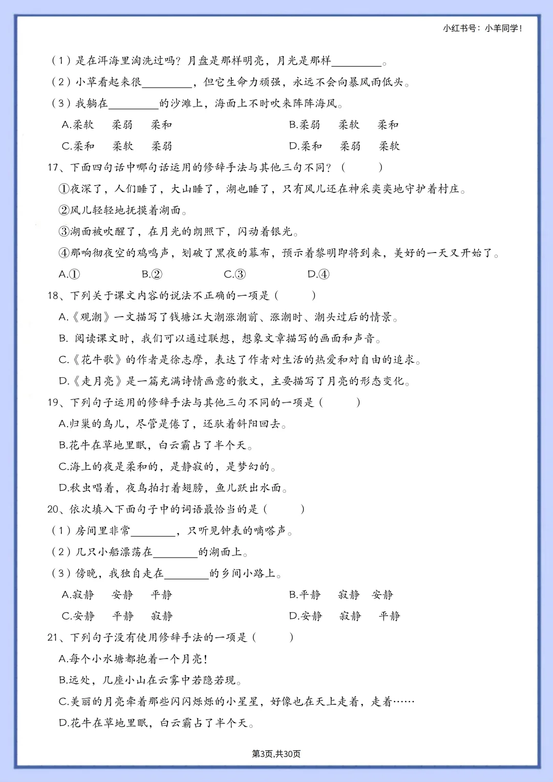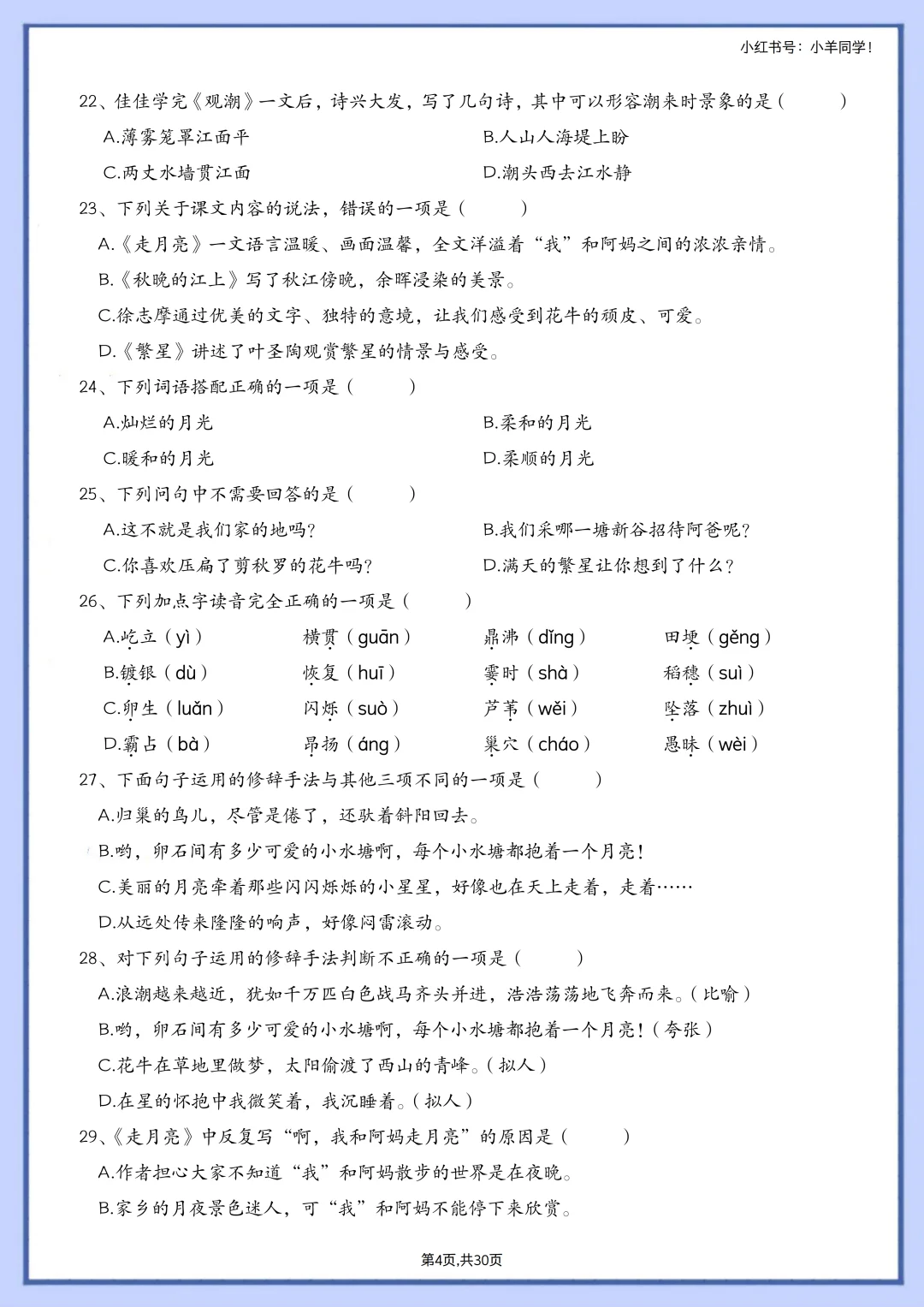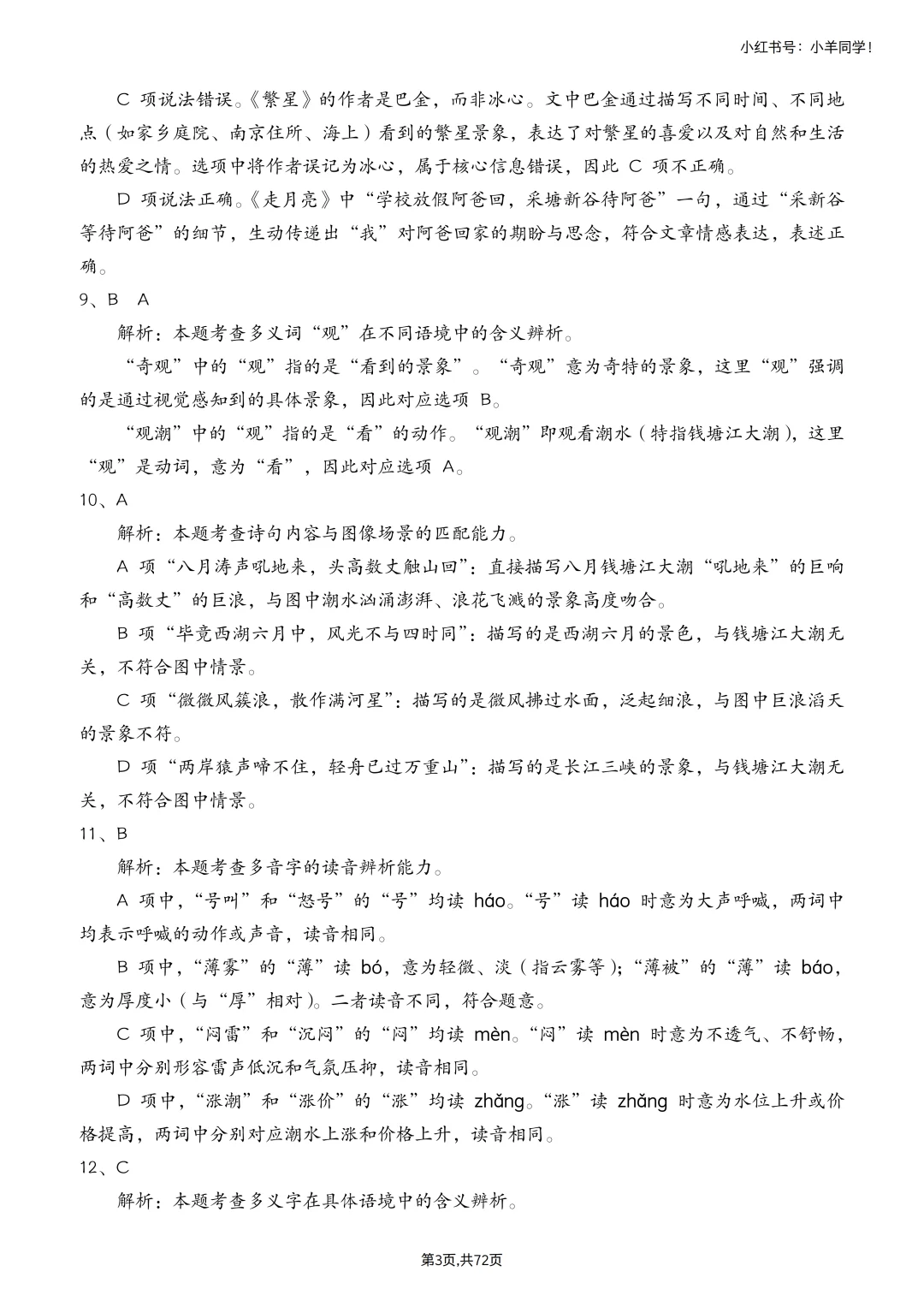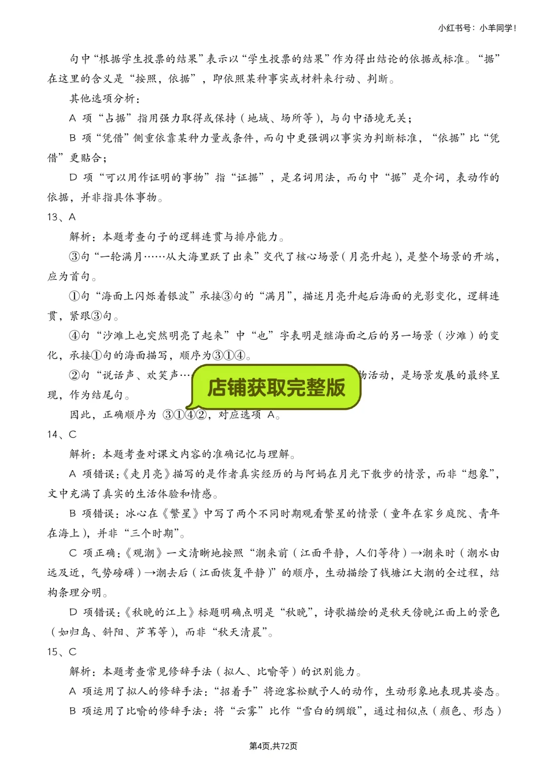 ✅ 别看是选择题,考查范围真的巨广!字音字形、标点符号、拼音练习、诗句理解、修辞手法、口语交际、修改病句、词句段运用、词语辨析、课文理解、句式转换、词语搭配、名句运用、关联词…… 基础知识点几乎全涵盖,一套练透超省心!