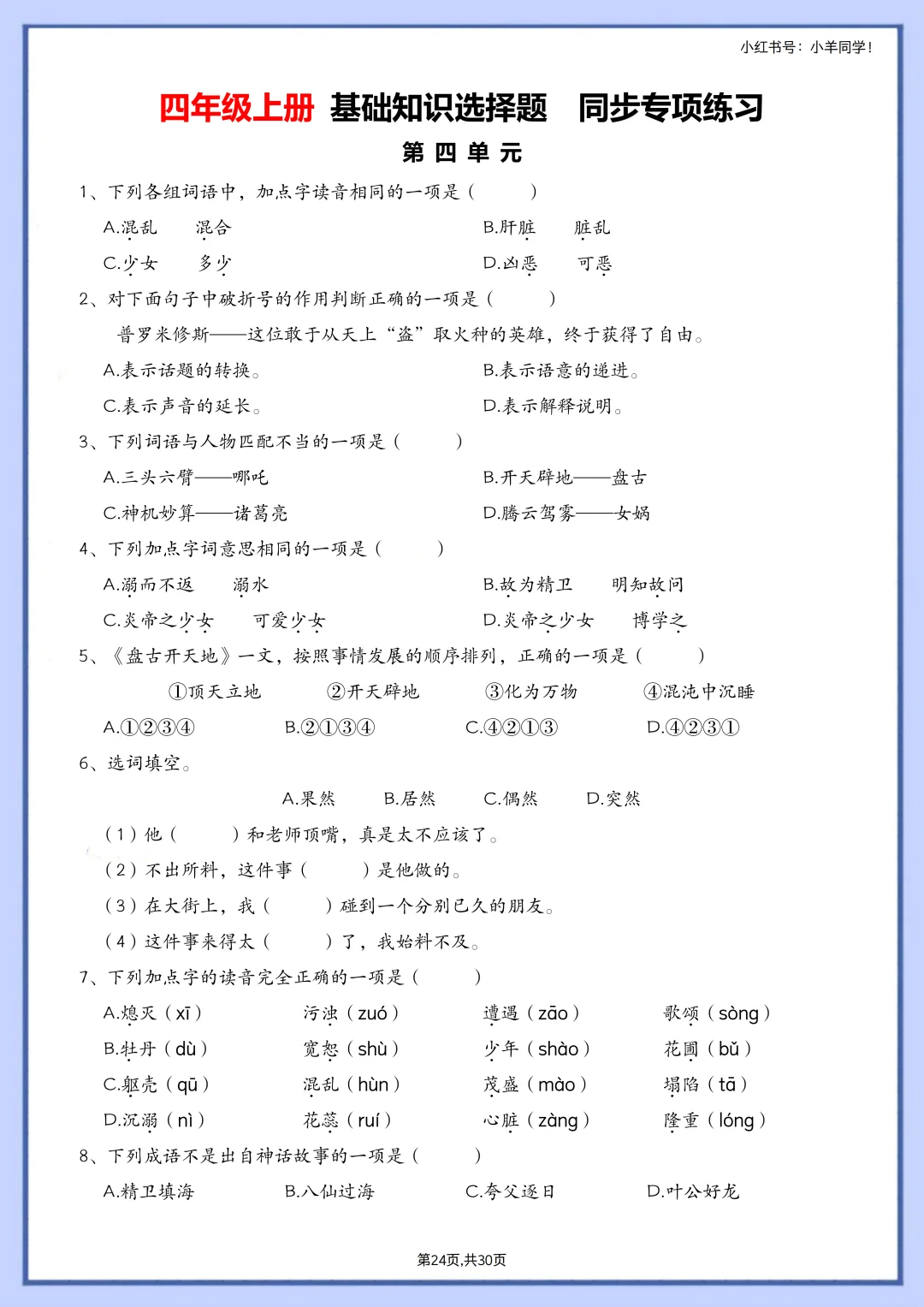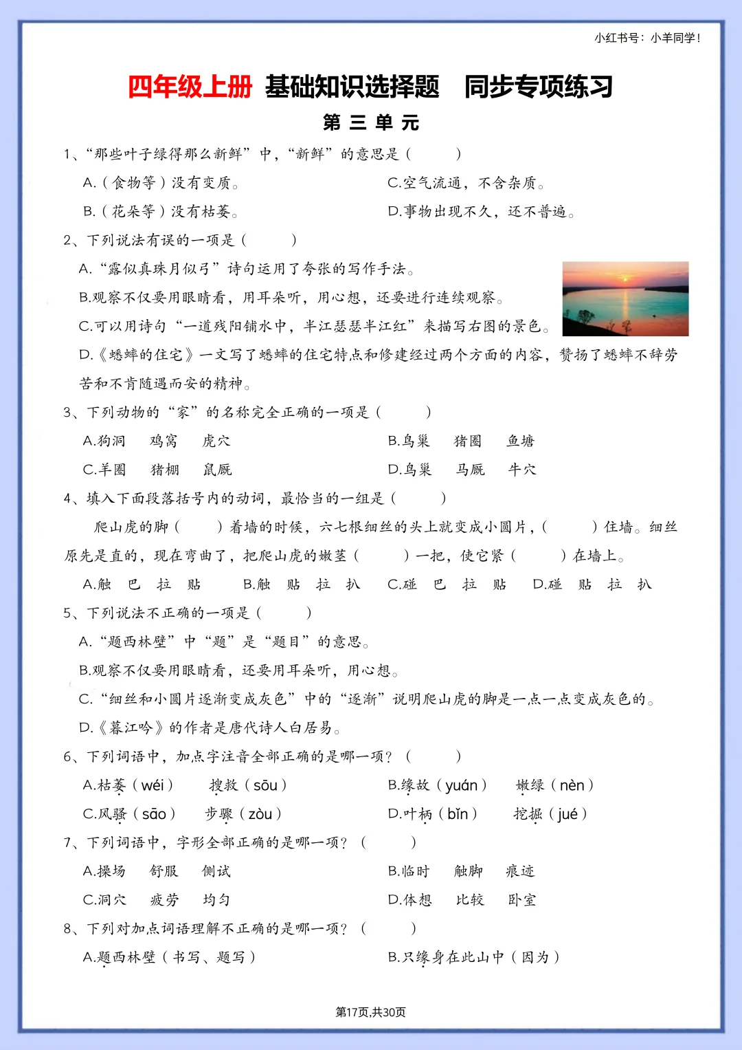最新整理的四上【基础知识选择题专项训练】终于搞定啦!