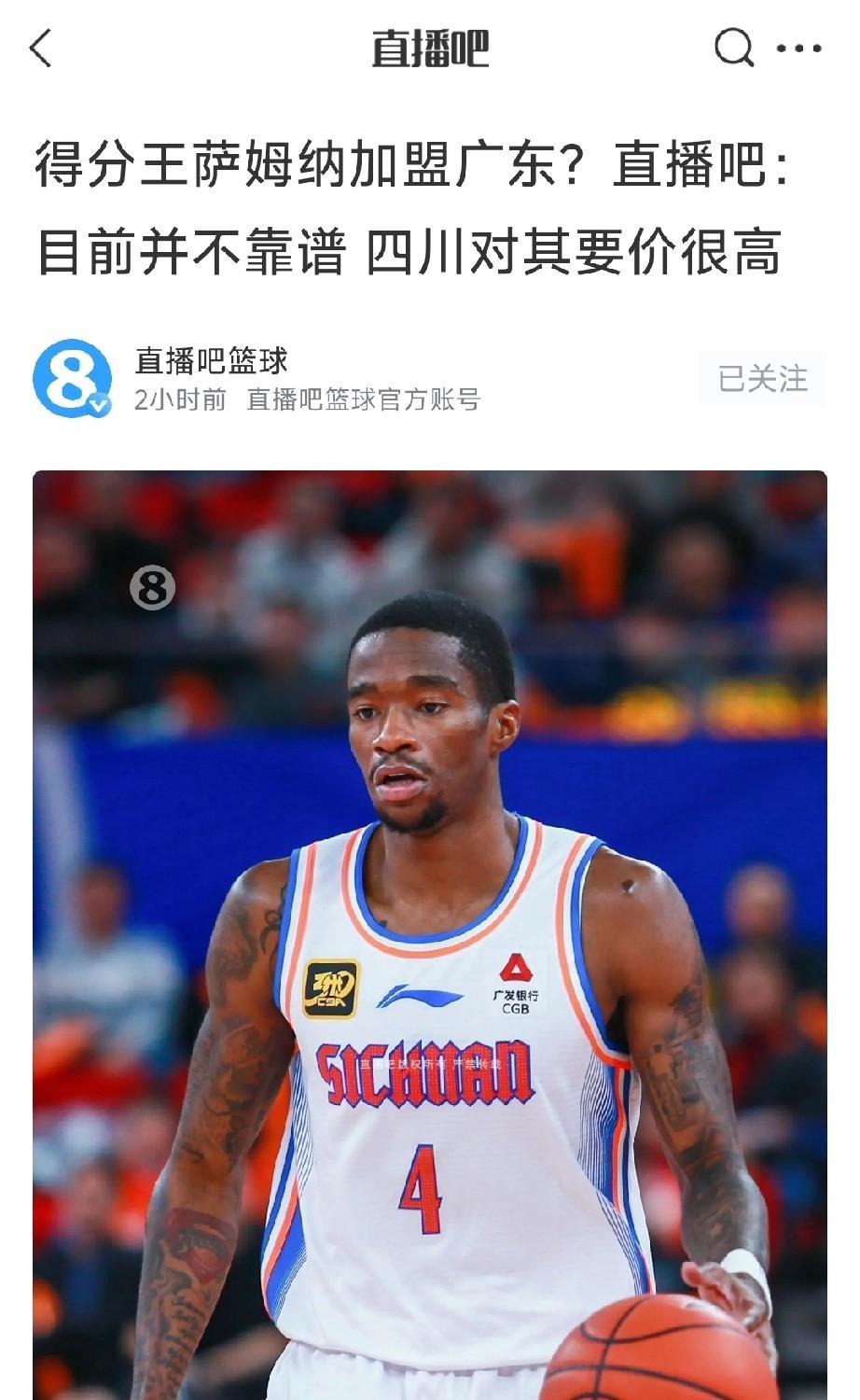 广东宏远看重的外援出现变数,媒体人晒萨姆纳图片:讨价还价,实现利益最大化;媒体报