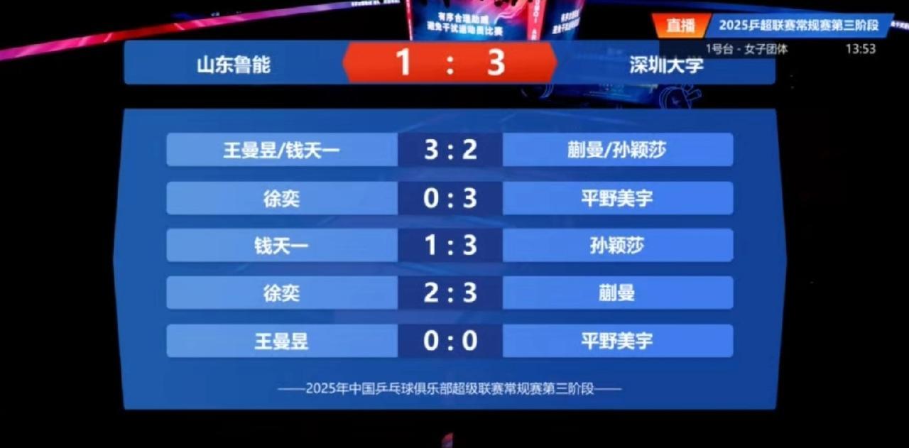[祝福][祝福]恭喜深圳大学乒超联赛以第一名晋级决赛阶段!最后一场3-1鲁能! 孙颖莎,蒯曼,谭予萱,平原美宇!超级棒!![赞][赞] 深大的团魂很燃,因为她有最好魂!!莎宝!! 今年的乒超联赛三个阶段看下来,莎莎真的是深大的定海神针!!能打球,能稳人心,还能兼职教练给战术!一份工资干三人的活,深大赚了![呲牙][呲牙] 一个乒超联赛下来,愣是将平野美宇也看顺眼了!发现平野很好学,莎莎在指导其他人的时候,她都很认真的在听!还很有眼力的给拧瓶盖![呲牙][呲牙] 接下来是下个月的澳门冠军赛了!莎莎,蒯曼,澳门冠军赛见,继续加油!![加油][加油] #头号创作者激励计划#