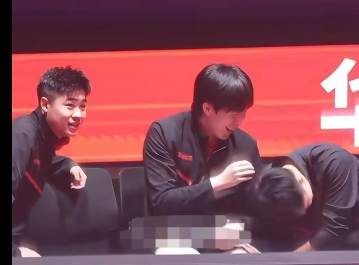 头哥:你们快看对面!哈哈哈!笑鼠了!究竟发生了什么事情让头哥笑到肚子疼? 头哥:七号快看对面严升! 七号:严升怎么啦? 头哥:他穿的不是自己的衣服! 头哥:是主教练的衣服! 头哥七号:哈哈哈!(持续爆笑)