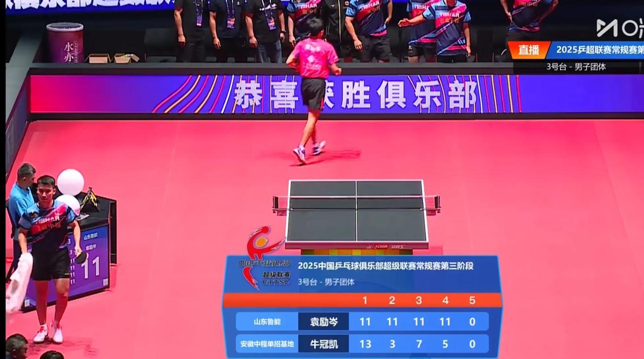 决胜场,左手持拍的袁励岑以3:1的比分战胜牛冠凯,帮助山东鲁能队以3:2的大比分