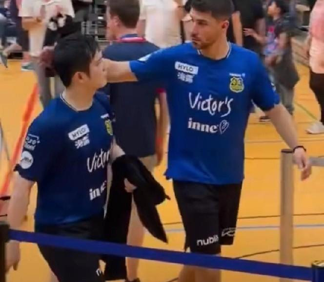 这是很暖的一幕! 原来让人没想到的是,在德甲乒乓球联赛,虽然樊振东输给了鲁伊斯,没有取得首场比赛胜利! 离场时,樊振东的队友弗朗西斯卡不仅一直陪伴,还摸了摸樊振东的头,拍了拍他的肩膀,表示安慰。 之后弗朗西斯卡还帮樊振东拿来了毛巾。 这一幕让网友们直呼弗朗西斯卡真的好暖心,是个好大哥好队长!氛围真的很不错!
