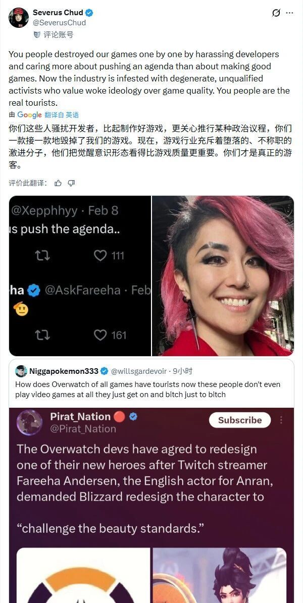 此外,大量国内玩家指出《守望先锋》的配音演员根本没有资格对官方决策指手画脚,暴雪必须处理这个白左红毛的女混子配音。