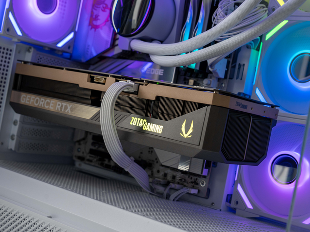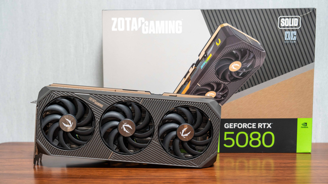 索泰RTX 5080 SOLID CORE OC以极简的硬朗科技风设计诠释非凡性能,正面错落排列的栅条元素赋予显卡简洁有序的韵律感与立体层次。配备3把环刃风扇,采用高强度新型复合材质与环形导流风罩,在优化叶片曲率的同时提升风量、风压与垂直穿透力,并支持智能启停技术,兼顾散热效率与静音表现。