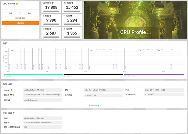 3D MARK的CPU Profile测试,英特尔® 酷睿™ Ultra 7 270K Plus 单核1355pts,相比9700X提升6.4%,相比265K提升3.0%;全核19808pts,相比9700X提升120.0%,相比265K提升18.2%。