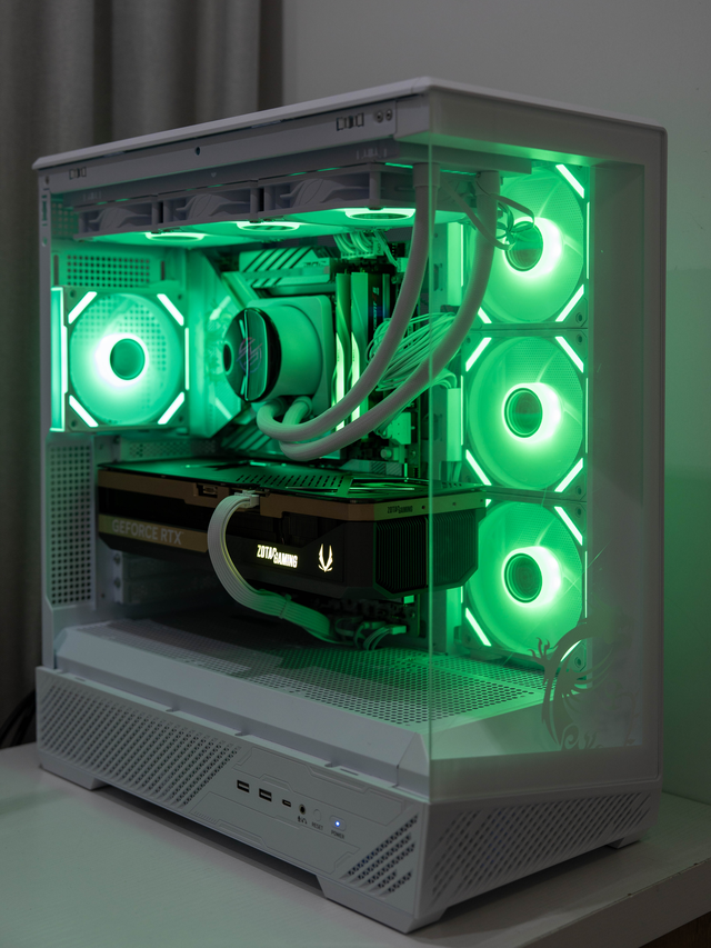 散热设计上,它在高颜值与高效能之间找到了平衡点。机箱右侧板、顶部、底部及电源仓侧面均覆盖大面积高透气Mesh网板,共同构建起立体散热风道,确保热空气快速排出。内部空间充裕,兼容ATX及背插式主板,最多可安装10个风扇或同时容纳双360冷排,为高性能硬件提供充足的散热扩展空间。