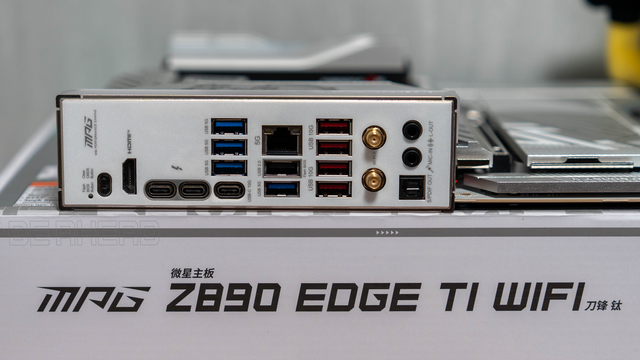 背部I/O接口全面,搭载双雷电4、1个Type-C、10个USB-A接口,还有5G有线网口以及Wi-Fi 7无线网卡,为高速网络传输与低延迟游戏体验提供坚实保障。