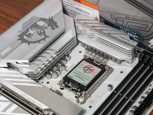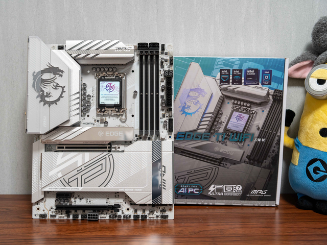 作为整套平台的性能基石,微星MPG Z890 EDGE TI WIFI刀锋钛主板在外观与用料上均有出色表现。它采用纯白色PCB设计,搭配大面积的银白色第二代冰霜铠甲,散热模块上的几何切割线条与磨砂质感相得益彰,完美契合白色主题装机的审美需求。