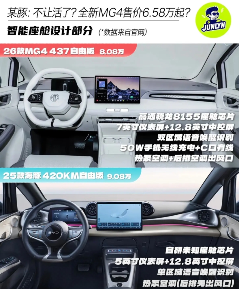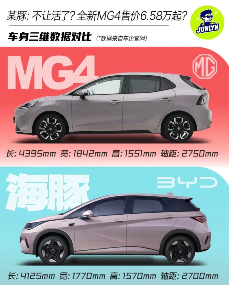 我去,我以为比亚迪海豚10.68万起的电车已经是最低,谁能猜到名爵MG4居然来个6.88万起,直接便宜3.8万,大家都别想活?没有最低只有更低。 全新名爵MG42025年8月29日在成都车展正式上市,一上市就达到销量巅峰,仅用39分37秒订单突破10000台。还有在8月5日开启预售后,24天内订单已突破45000台 。加起来订单突破5.5万台,它就是凭借高性价比,价格低至6.58万起,还配置丰富,CTB技术、半固态电池、8155芯片等。同时,它在空间、续航、动力方面表现出色,还具备智能互联优势。 名爵MG4的空间很大,续航更长,充电更快,还价格更低,比亚迪的海豚拿什么更它比?比亚迪的加油了,不然今年的550万销量目标难以达成咯。 名爵MG4和海豚大家怎么选?