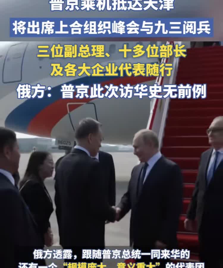 国家一把手下了飞机首先跟空姐握手示意,格局瞬间打开了。 俄罗斯总统普京已于上午抵达天津,市委书记陈敏尔现场等候接机。普老板此次出行可谓是意义非凡,访华团队除了阵容豪华,访华时间之长也是历史少有,访华的目的更不单一。 要说普老板的格局确实不一般,出了机舱以后,先跟航班乘务员握手示意,哪个领导人能有有此番举动啊,这也体现出了普老板确实没有把自己的位置摆的高高在上,在亲民这一块做的细致入微,也难怪他能当了二十多年的一把手,应该是民心所向。 此次访华,跟随普京一起随行的还有三位副总理、十多位部长以及多位企业代表,阵容可谓是空前绝后,这也表达出了普京对华的一个绝对态度。 普京这次来华为期四天时间,一是为了参加上合峰会,而是参加中国举办的抗日战争胜利80周年纪念活动,普京曾明确表示没有中国人民在第二次世界大战中,对日本的阻击,减少了苏联腹背受敌的后顾之忧,苏联也很难抽身应对德意两国的强兵压境,中国的抗日行动为世界反法西战争做出了不可磨灭的贡献。 其此番前来,也是对世界各国的一个宣告,中俄两国的稳定关系,对世界格局的稳定有着重大影响。