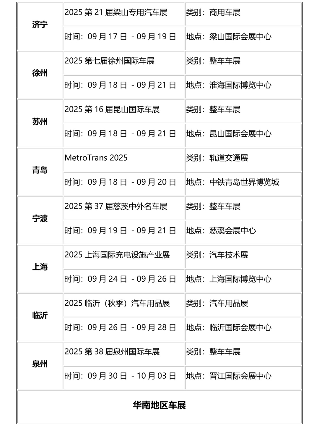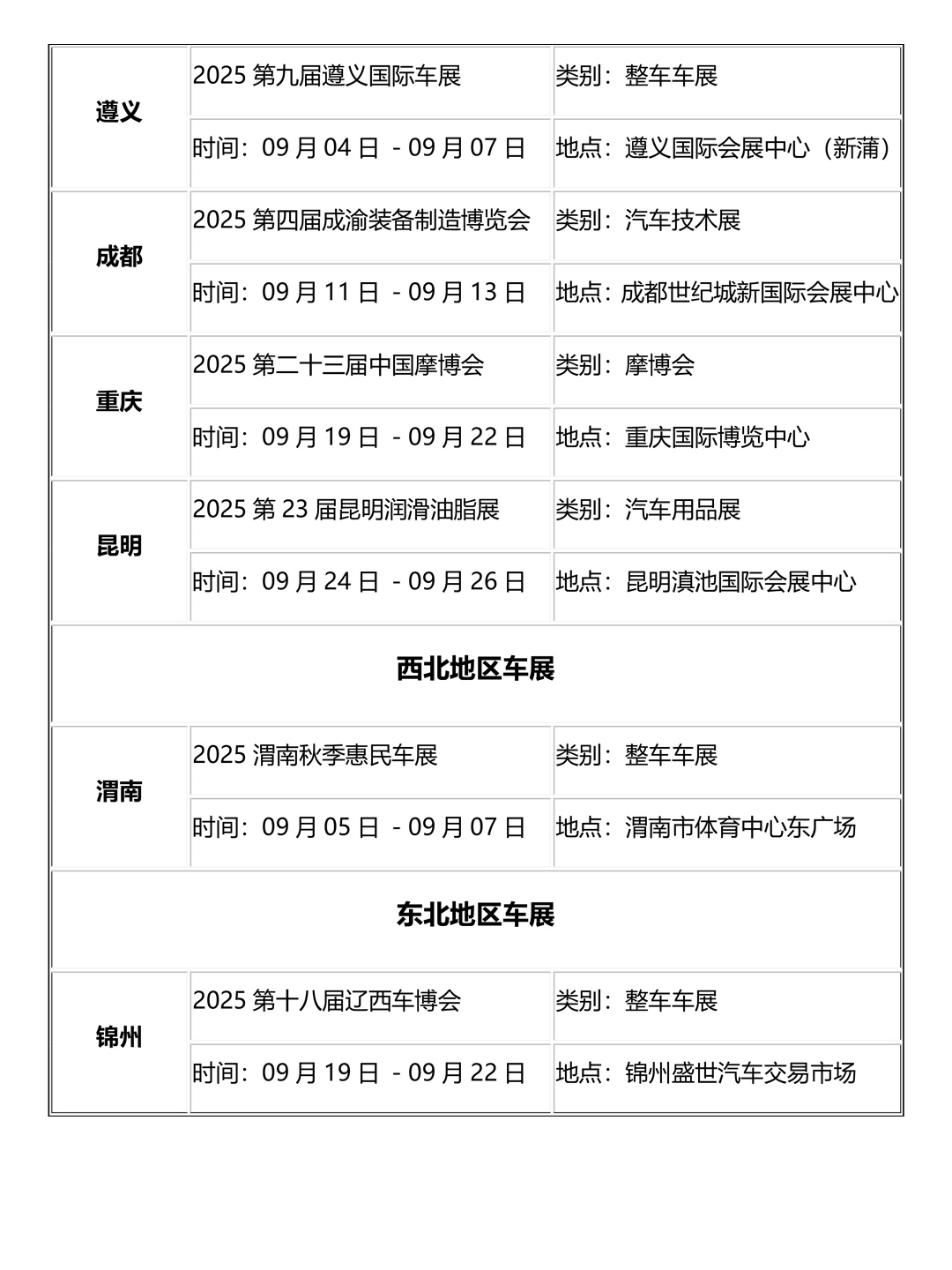 我们收集整理了2025年9月全国各地车展排期信息,包括车展时间、车展举办地点、车