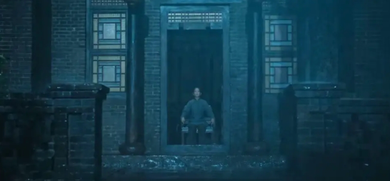 不得不说,这一场戏,真的太应景了,嫂子坐在那里,简直是毛骨悚然,典型的中式恐怖。嫂子刚好是坐在大门下,形成一个“囚”字,像极了她被封建思想囚禁的一生。