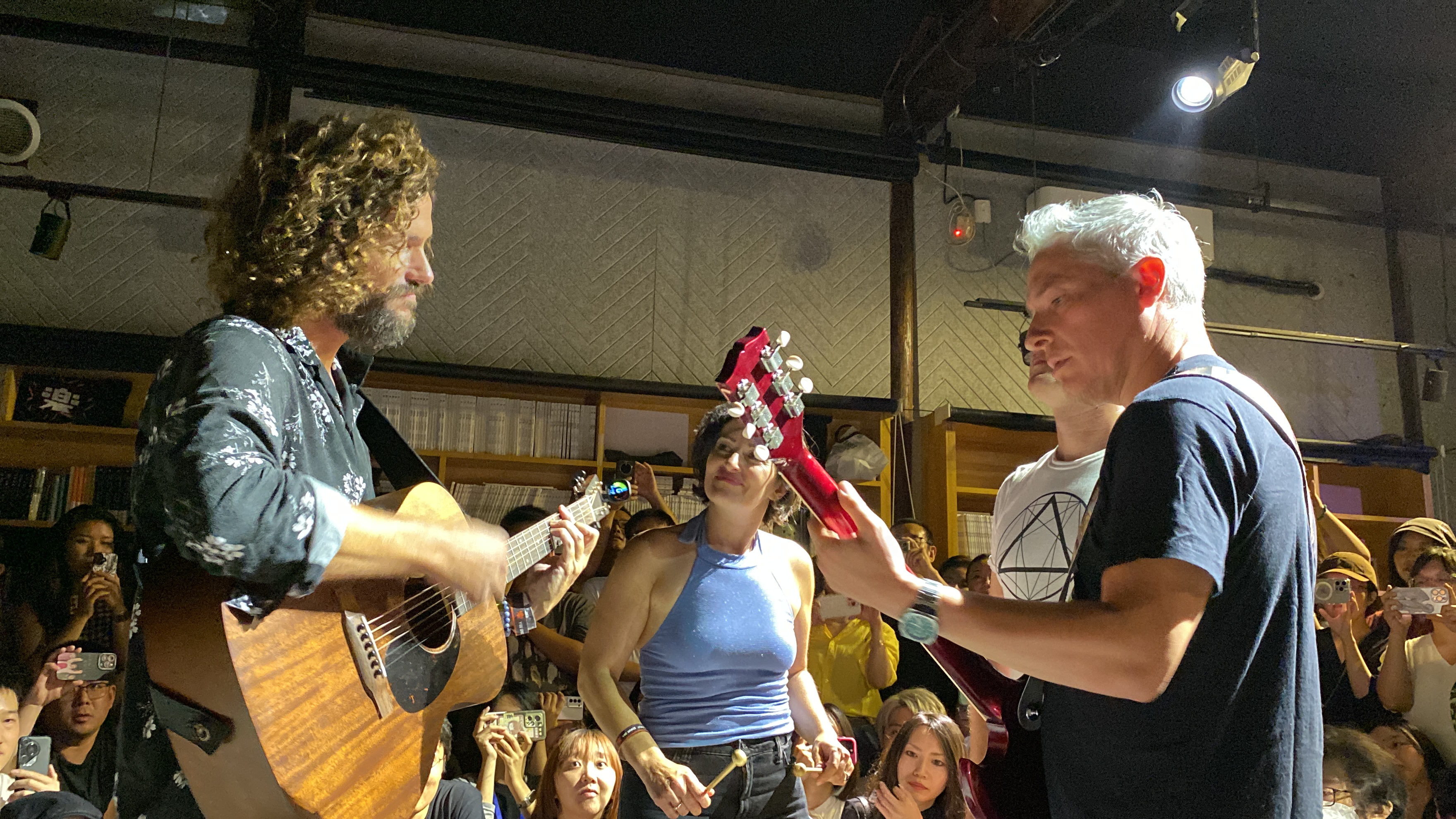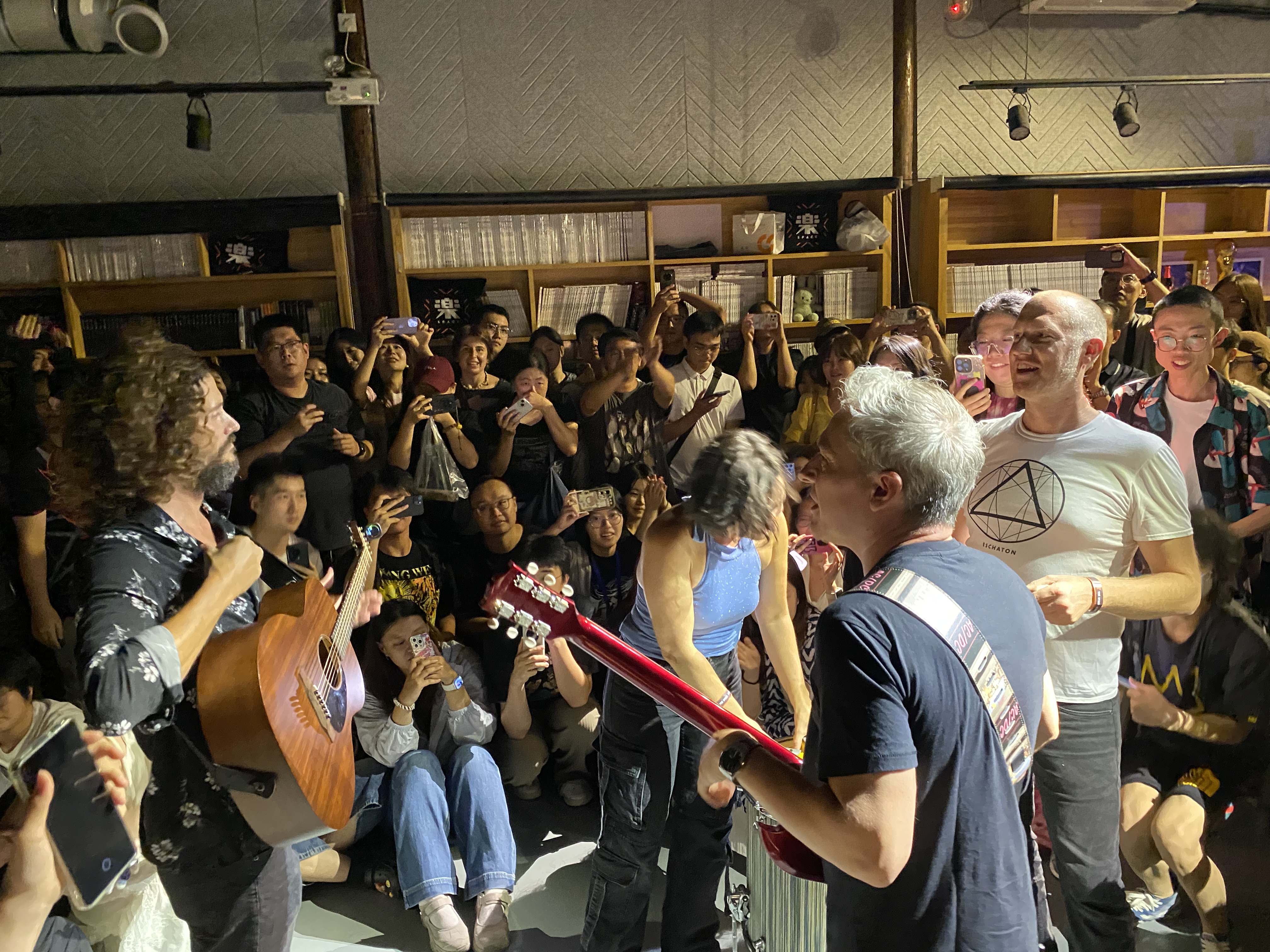 唯美的旋律,怎么能没有唯美的灯光?引力工作室(Infinite Limits)灯光视觉工作团队,为Kwoon的演出锦上添花,让习惯了乐空间呆板粗陋灯光的乐迷有种不真实之感。《Ayron Norya》在Kwoon近二十年的创作生涯中算是一首异类的作品,它是少数没有人声演唱的曲子,并且是乐队唯一时长超过10分钟的单曲。现场13分钟的版本,大气恢宏,放在常规时间压轴曲“当之无愧”。返场时,乐队全员走下舞台,来到场地中央玩起不插电的no stage。一曲《Youth》让年轻人的热情不依不饶,Kwoon为中国巡演的最后一个夜晚又唱了一遍《Life》。这是主唱Sandy Lavallart写给女儿的歌,台上第一遍唱给女儿,台下不插电唱给所有观众,我们都是摇滚乐的孩子。这一晚,如果你也笑了,如果你也哭了,那我们就拥有相同的记忆。