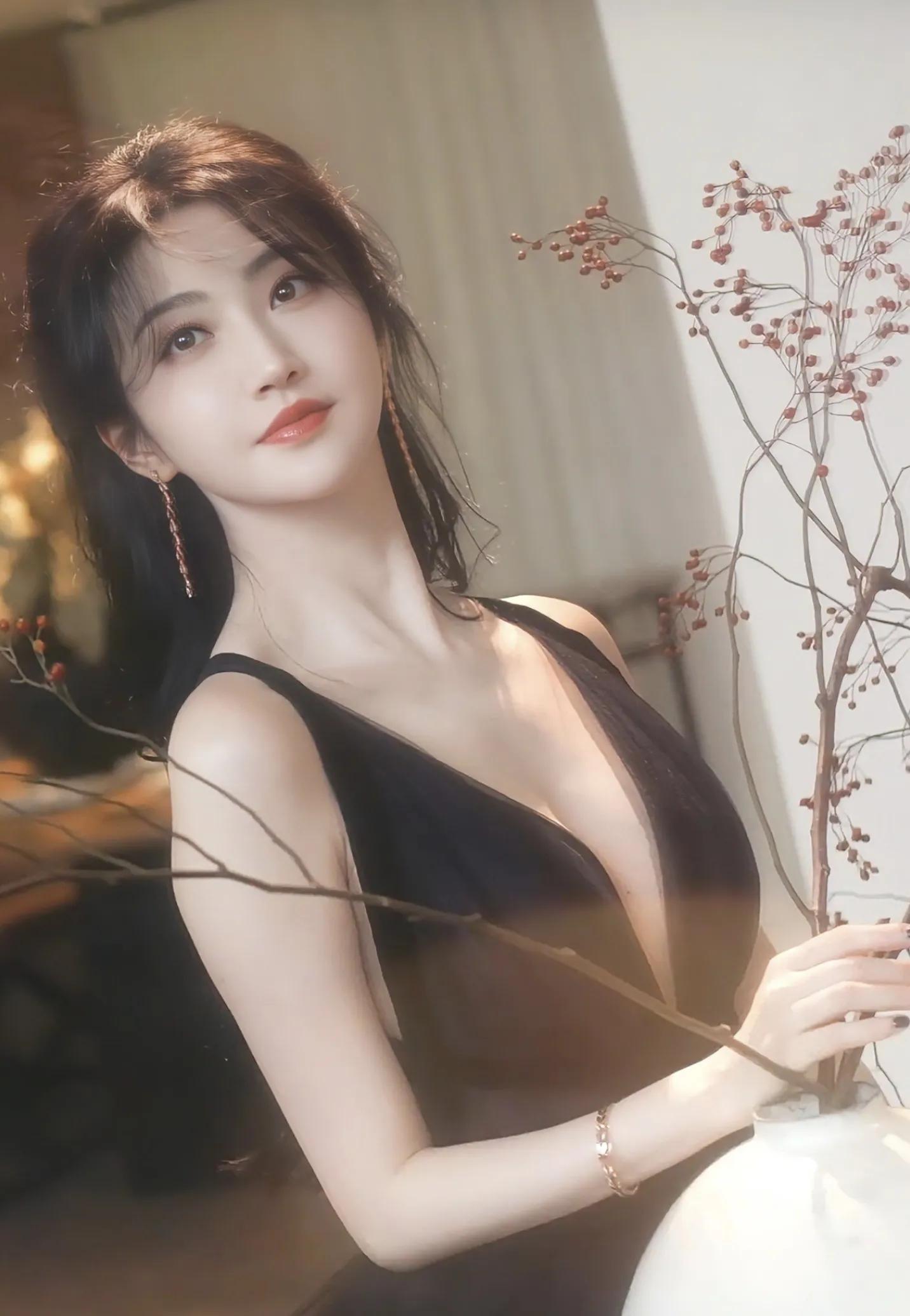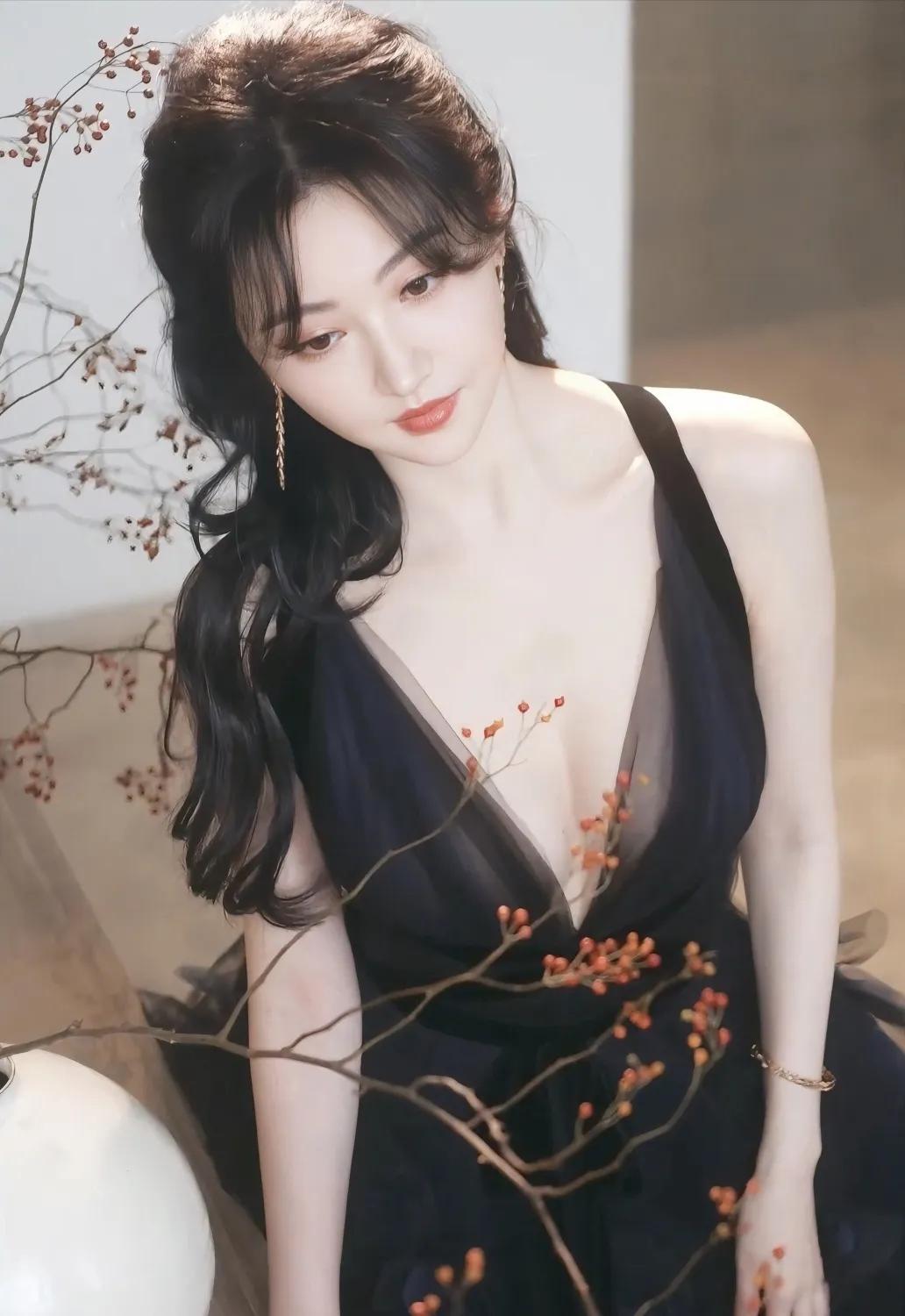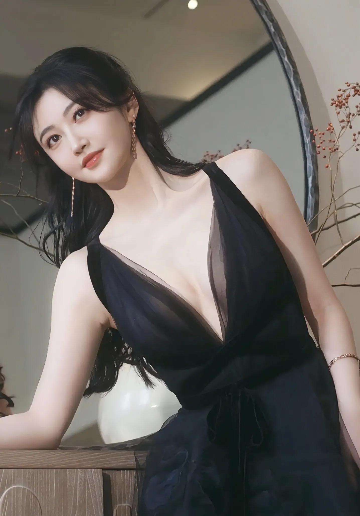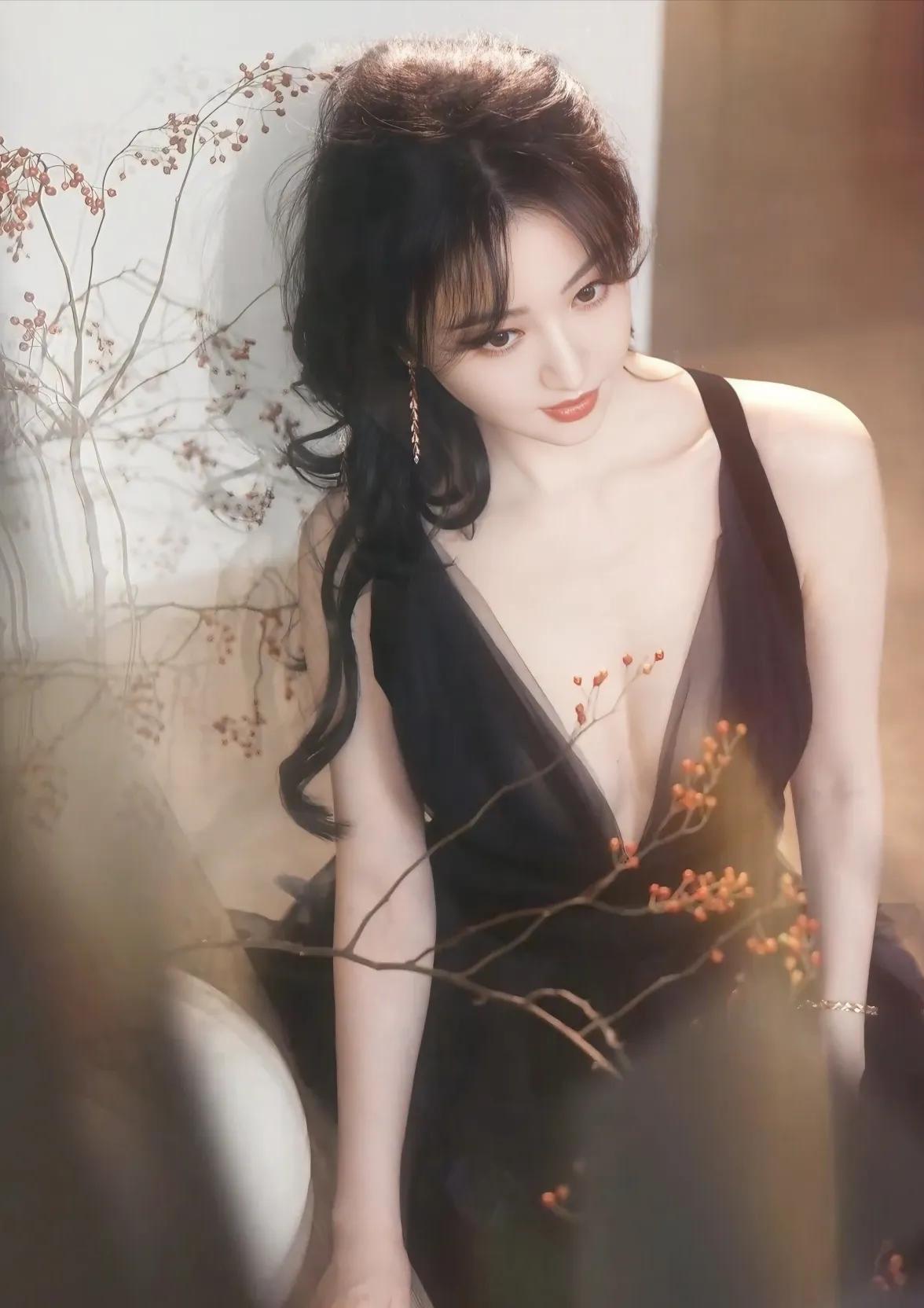 景甜锁骨如新月,深V纱裙演绎仲夏夜精灵