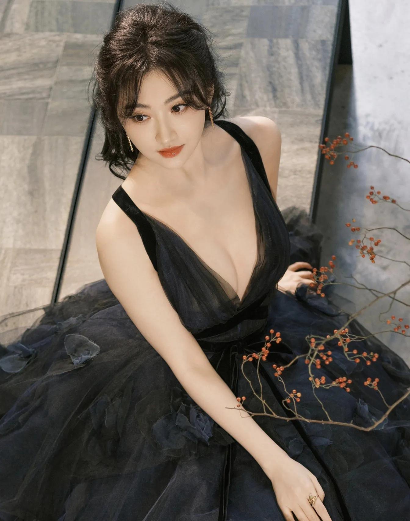 杨超越黑鸢尾公主裙,人鱼公主悄然苏醒