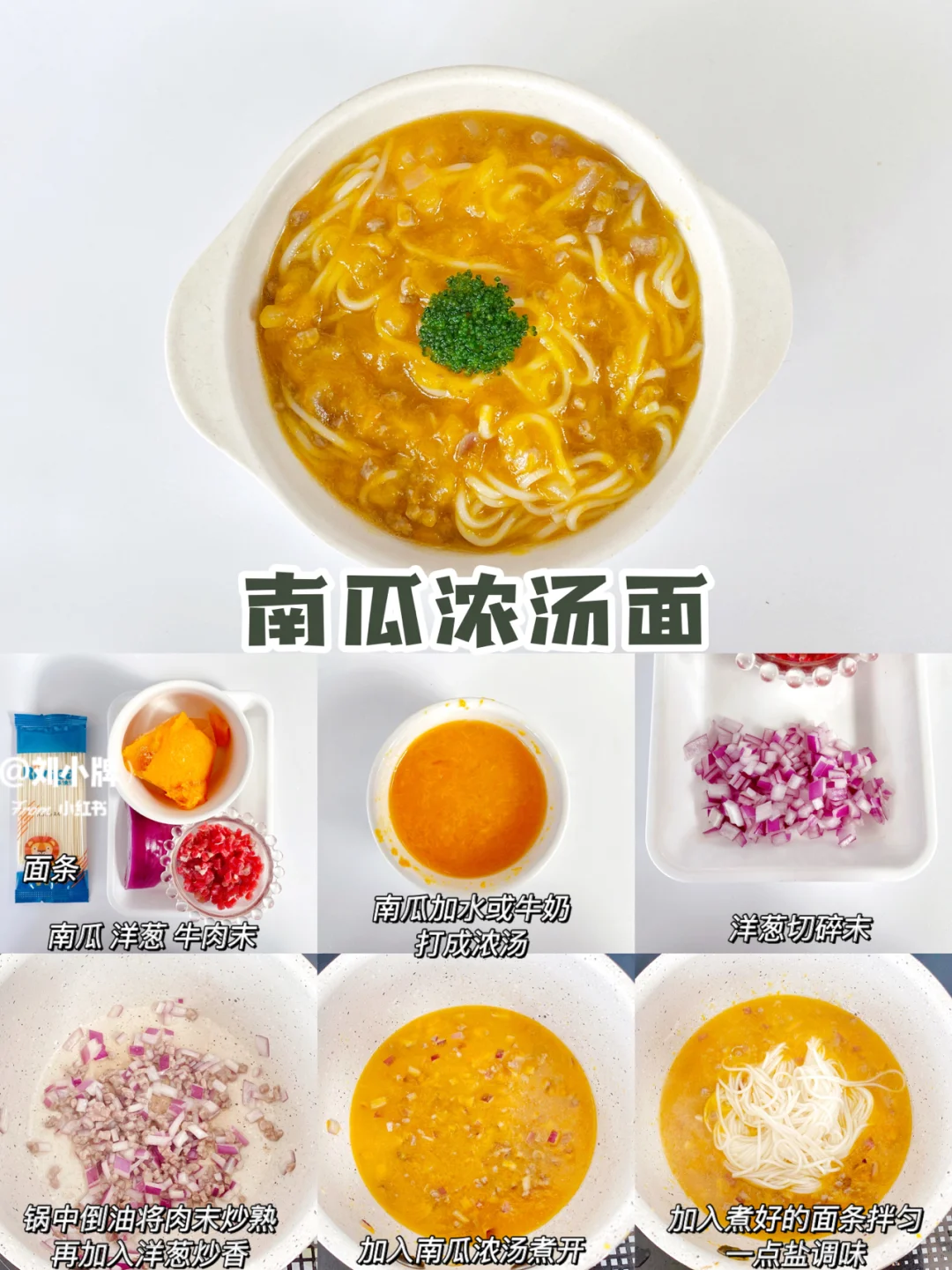 1.南瓜蒸熟后加水或者牛奶打成浓汤。