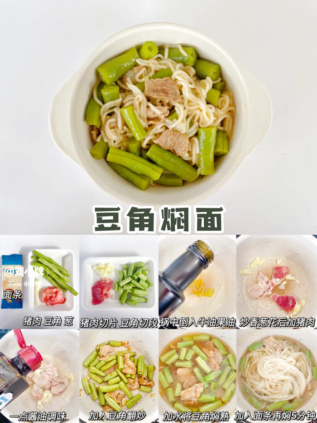 3.加水炖熟豆角后再加入面条焖5分钟即可。