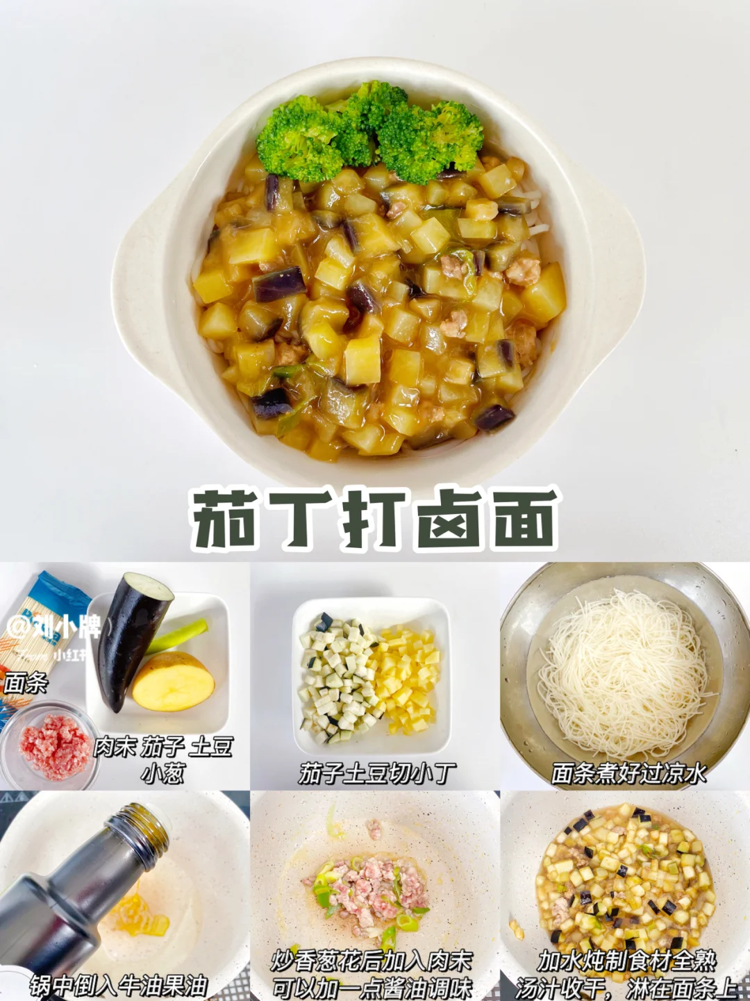 1.面条煮熟后过凉水备用,茄子土豆切小丁。