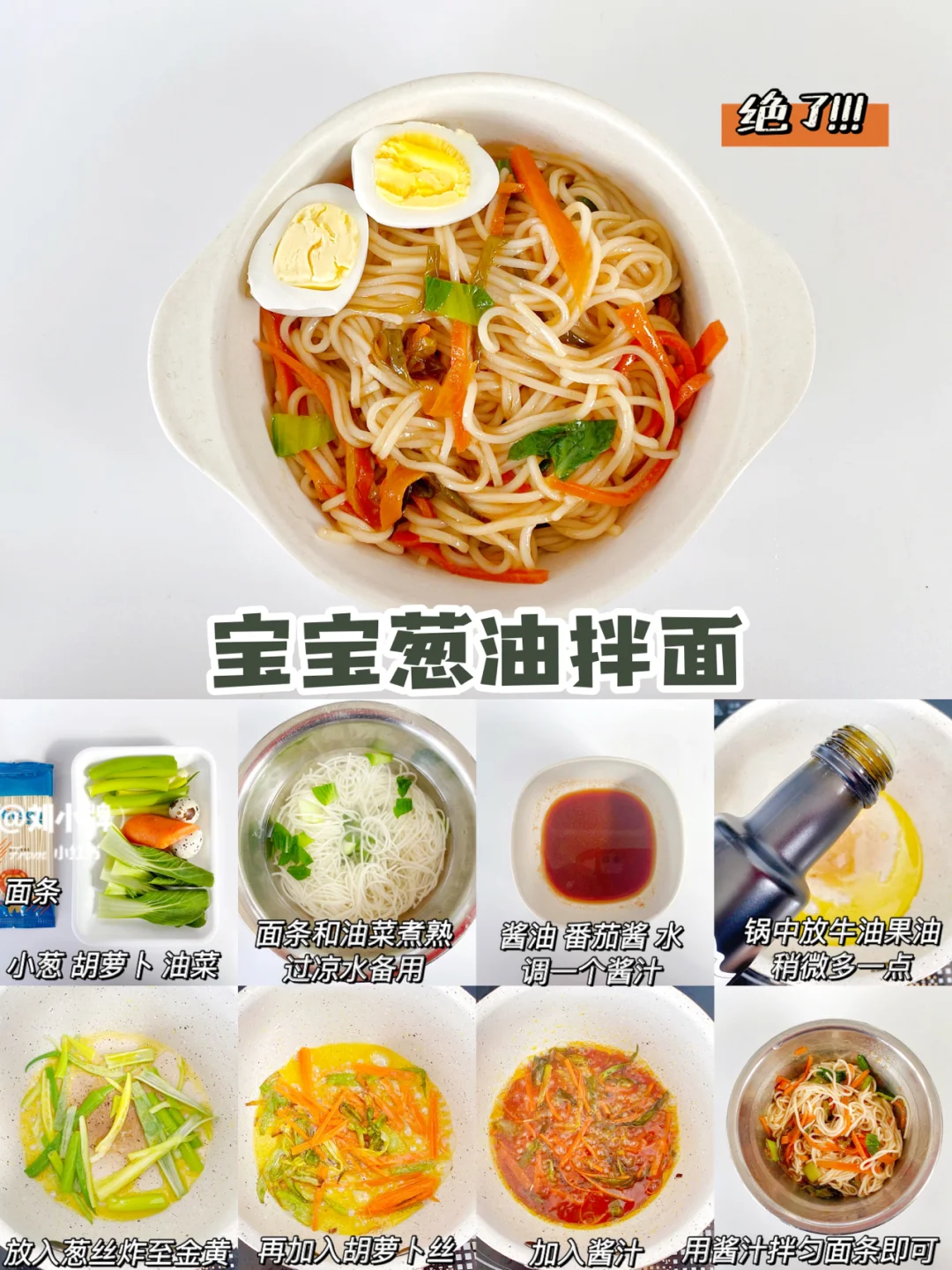 1.面条和油菜煮熟过凉水备用。小葱、胡萝卜切丝。