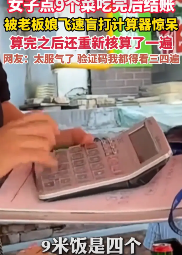 这就是专业!山西大同,女子和朋友一起去餐馆吃饭,结账时被老板娘飞速盲打计算器惊呆,老板娘手指在计算器上快速跳跃,边说边算,算完之后还重新核算了一遍,分文不差
