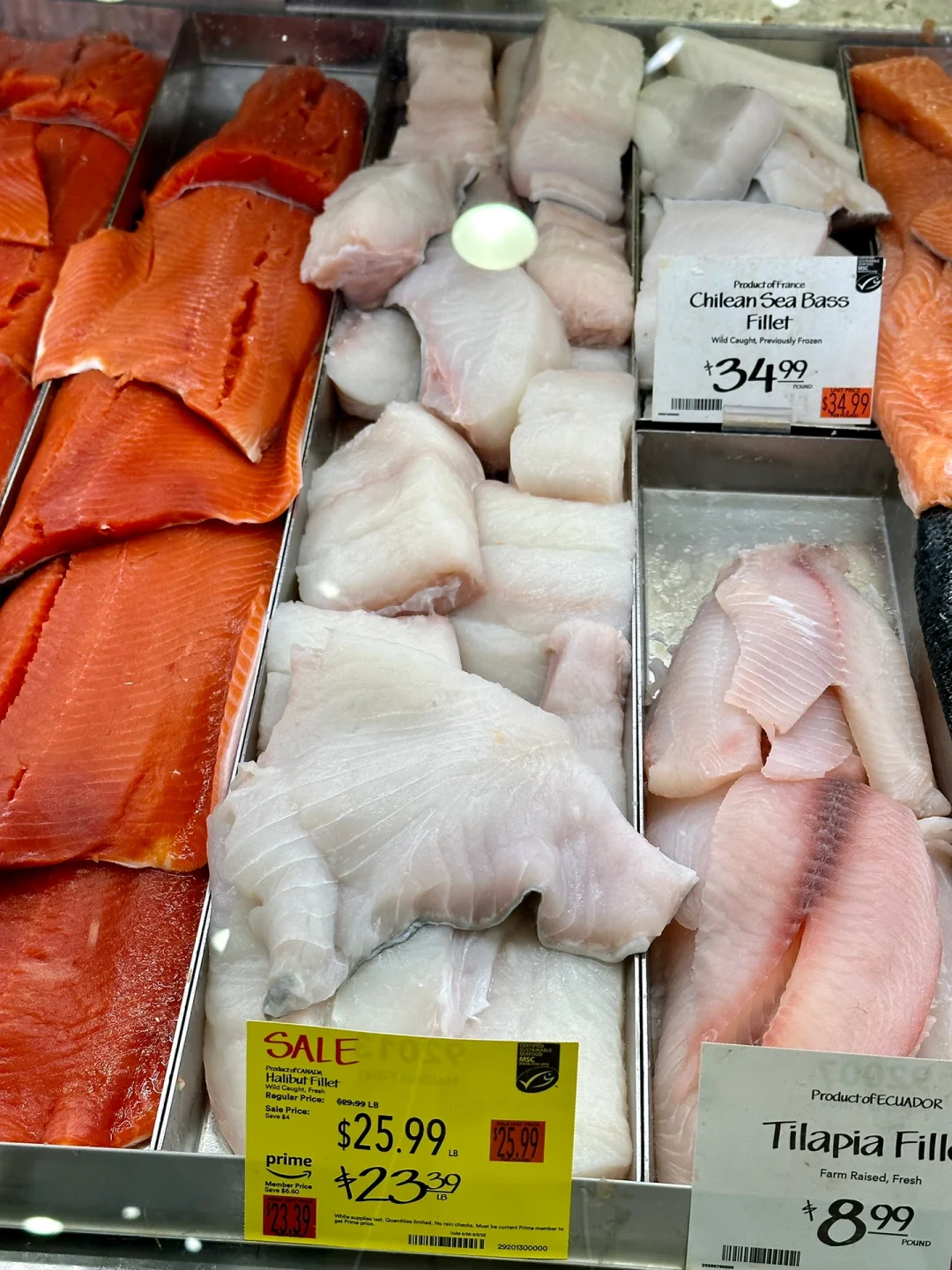 刚好今天在Wholefoods发现特价,就买来做做看。第一次尝试,选择了检验鱼肉口味最好标准的方法:清蒸。