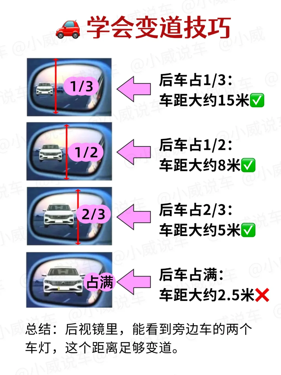 👀 看到前车后轮 ➡️ 说明你跟车距离约3米