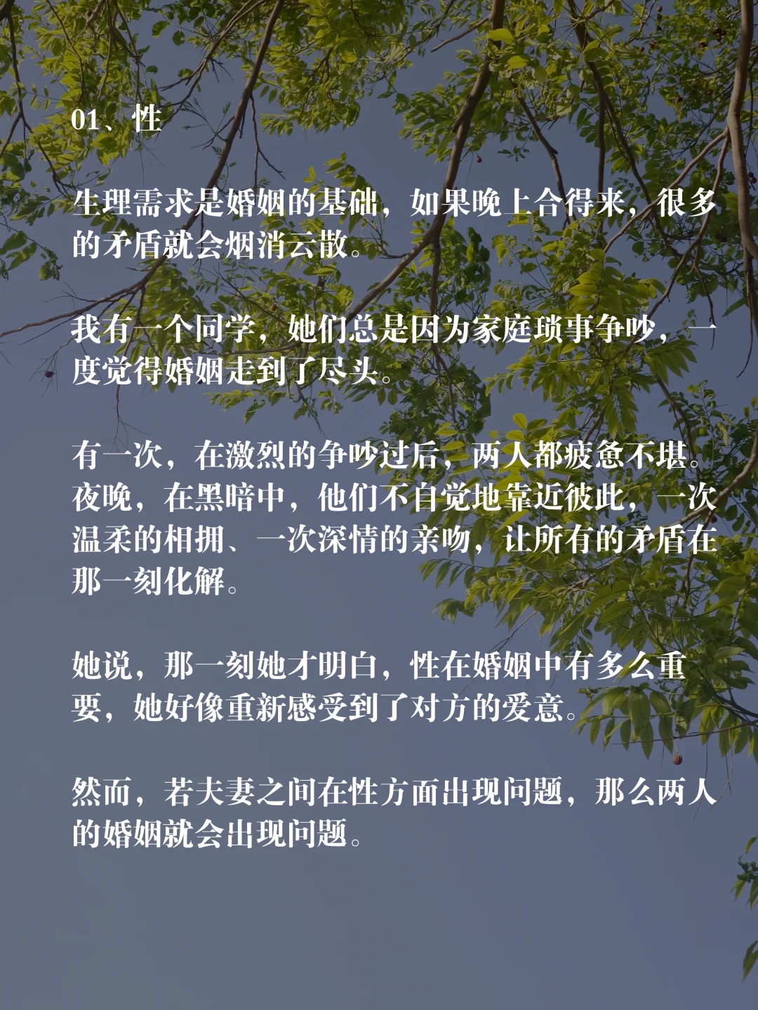 她说,那一刻她才明白,性在婚姻中有多么重要,她好像重新感受到了对方的爱意。