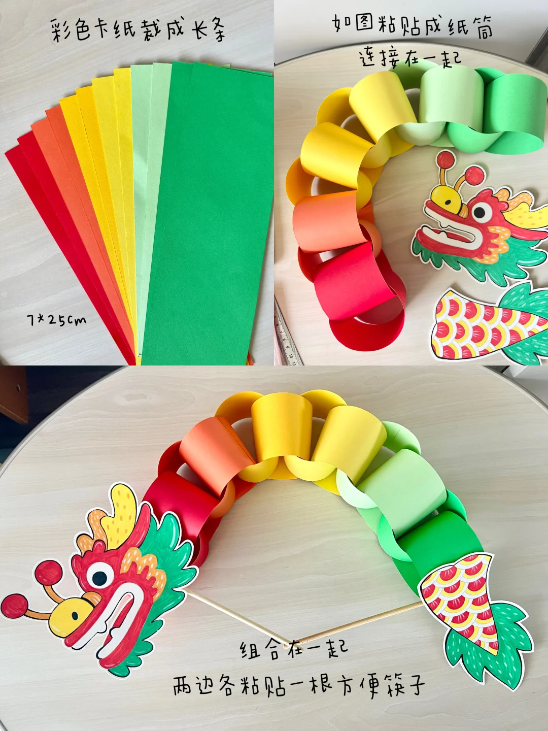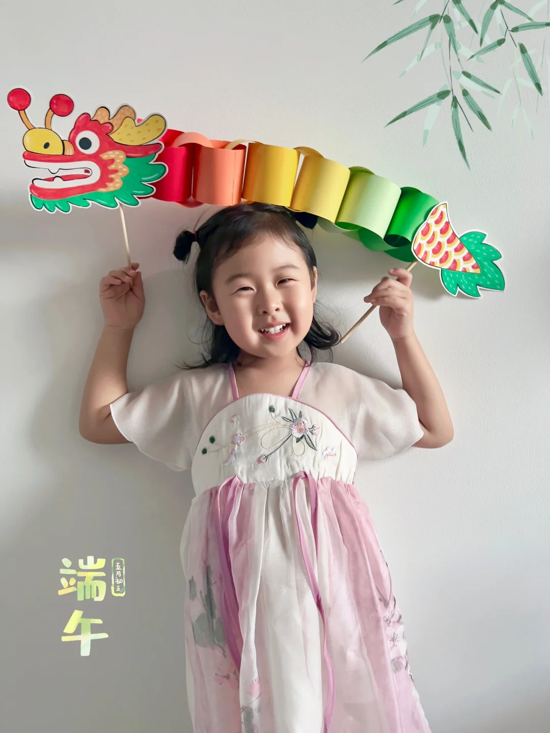 端午节就快到了~带娃玩点新花样! 用彩色卡纸做舞龙拍照道具,有手就会0失败哦~ 跟着教程一起做吧[害羞R]