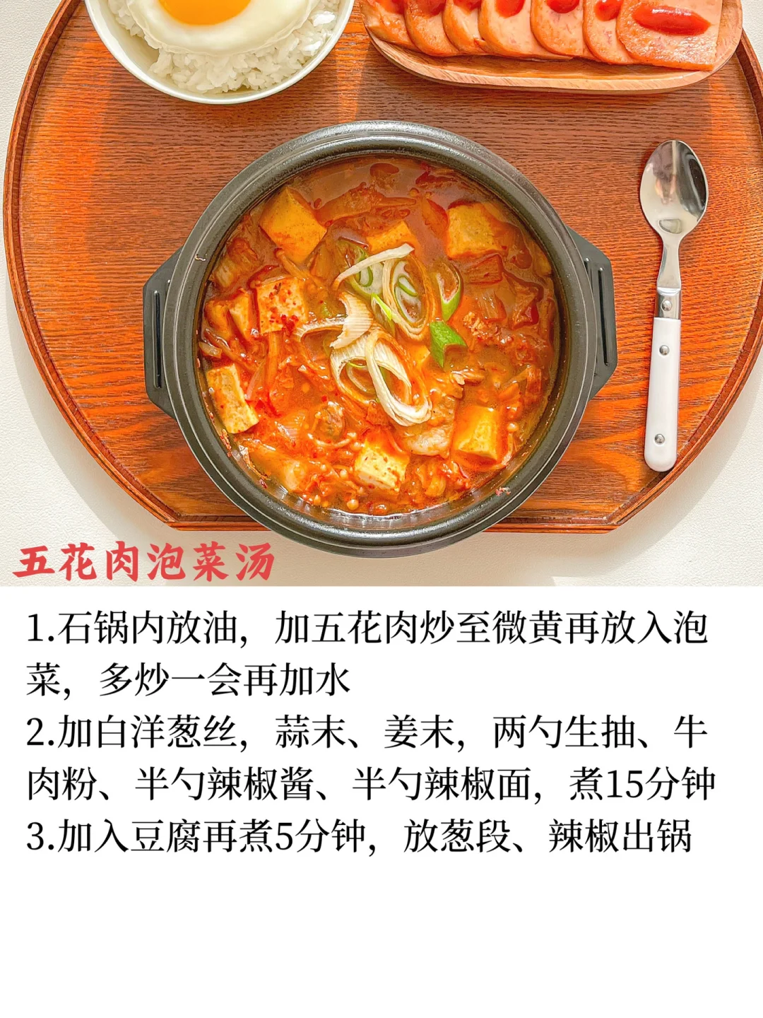 喜欢韩式料理的宝子看过来‼️ 分享四款经典简单好吃的韩式汤饭 每一道菜都是我的心头爱 超级下饭 宝子们快快get起来~ 💚韩式五花肉泡菜汤 💛韩式辣炖带鱼 🧡韩式牛肉辣汤 ❤️韩式嫩豆腐汤 图文做法可以翻翻之前的笔记 希望大家每天都能好好吃饭呦