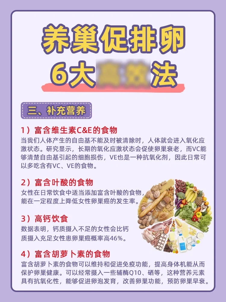 当我们人体产生的自由基不能及时被清除时,人体就会进入氧化应激状态。研究显示,长期的氧化应激状态会促使卵巢衰老,而VC能够清楚自由基引起的细胞损伤,VE也是一种抗氧化剂,因此日常可以多吃含有VC、VE的食物。