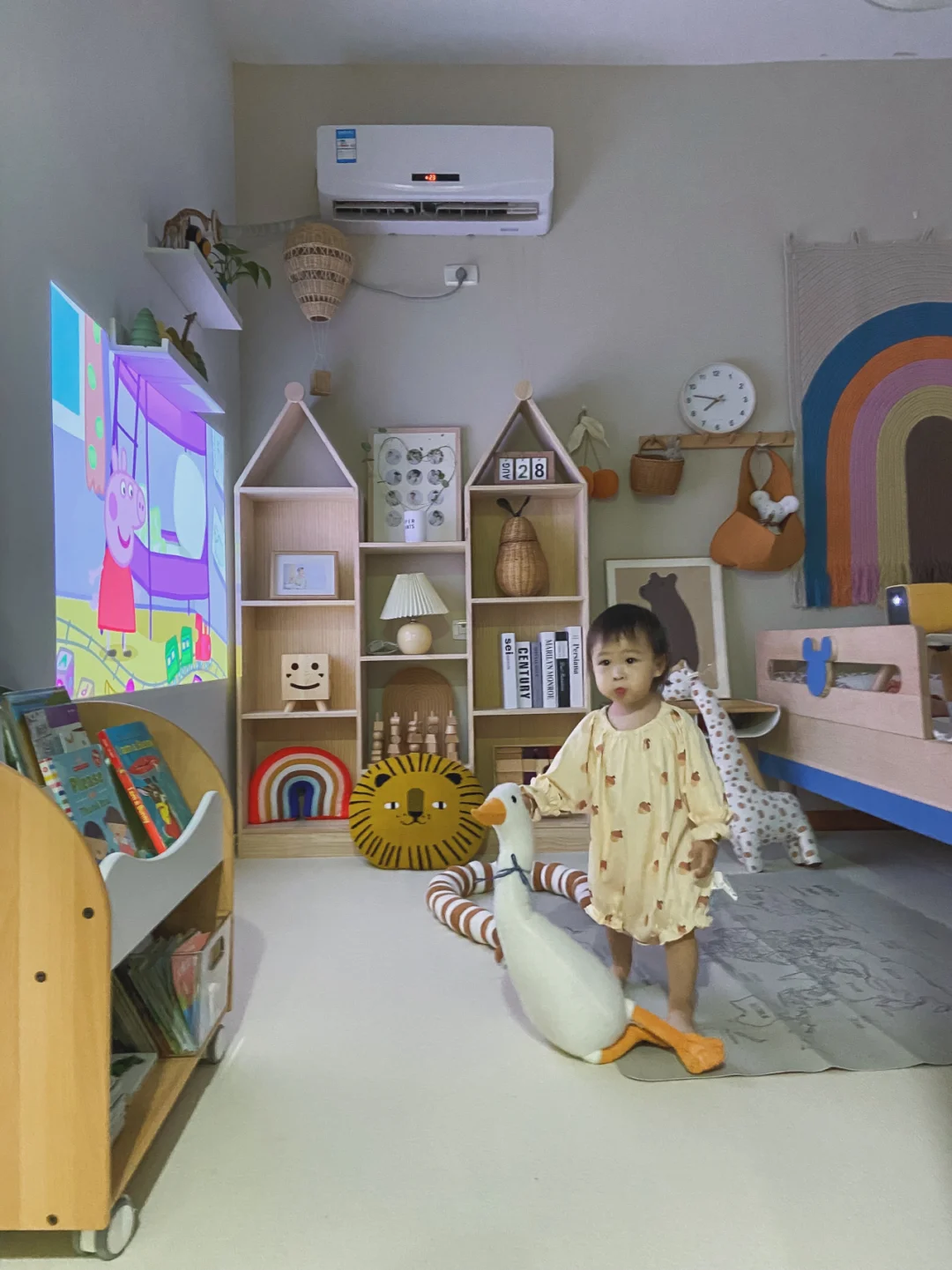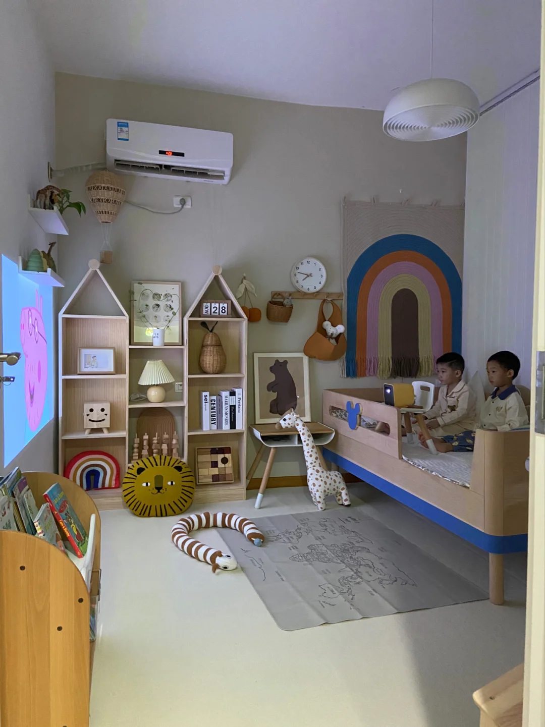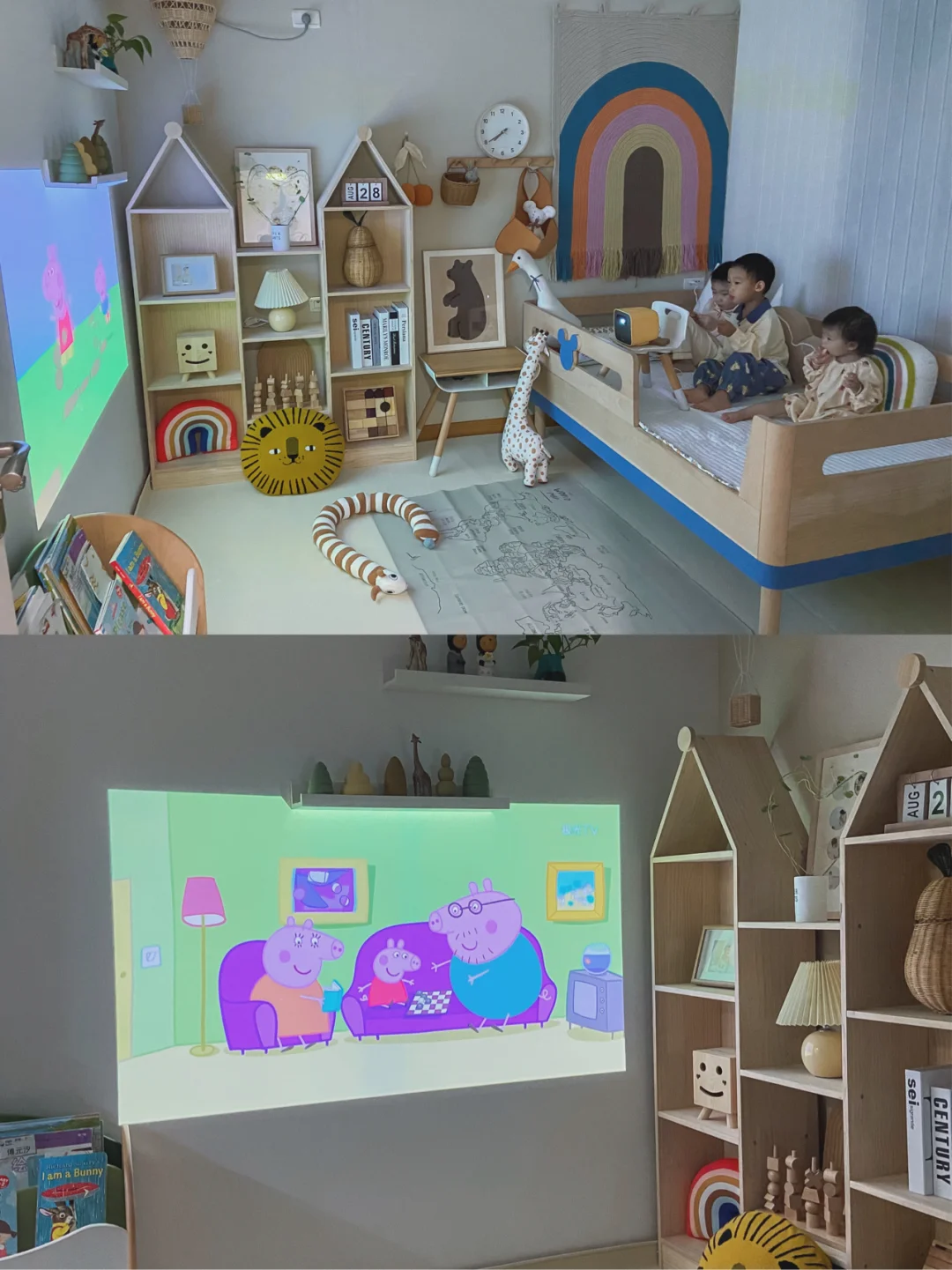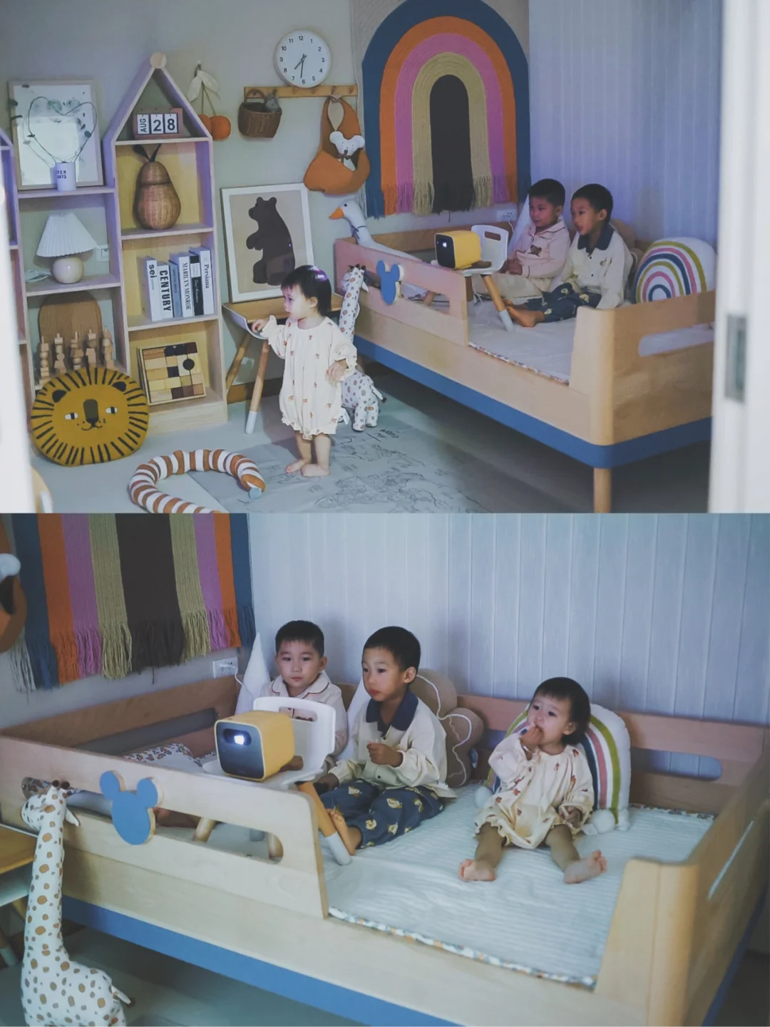 难得三个小可爱都在家里,两个哥哥老是粘着小星星,三个人形影不离的亚子太可爱啦!小星星在儿童房玩他们就跟着去。麻麻这个星期给宝宝们准备了个小礼物,是个小投影仪,我们小小的儿童房就变成家庭影院啦🎞🎥