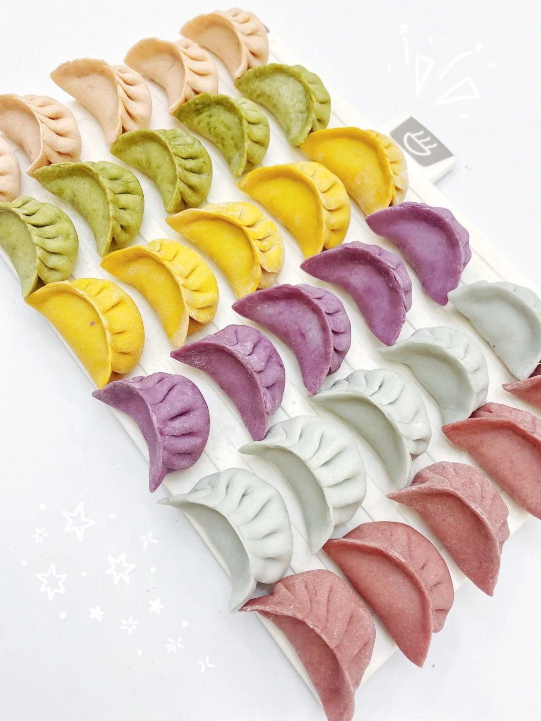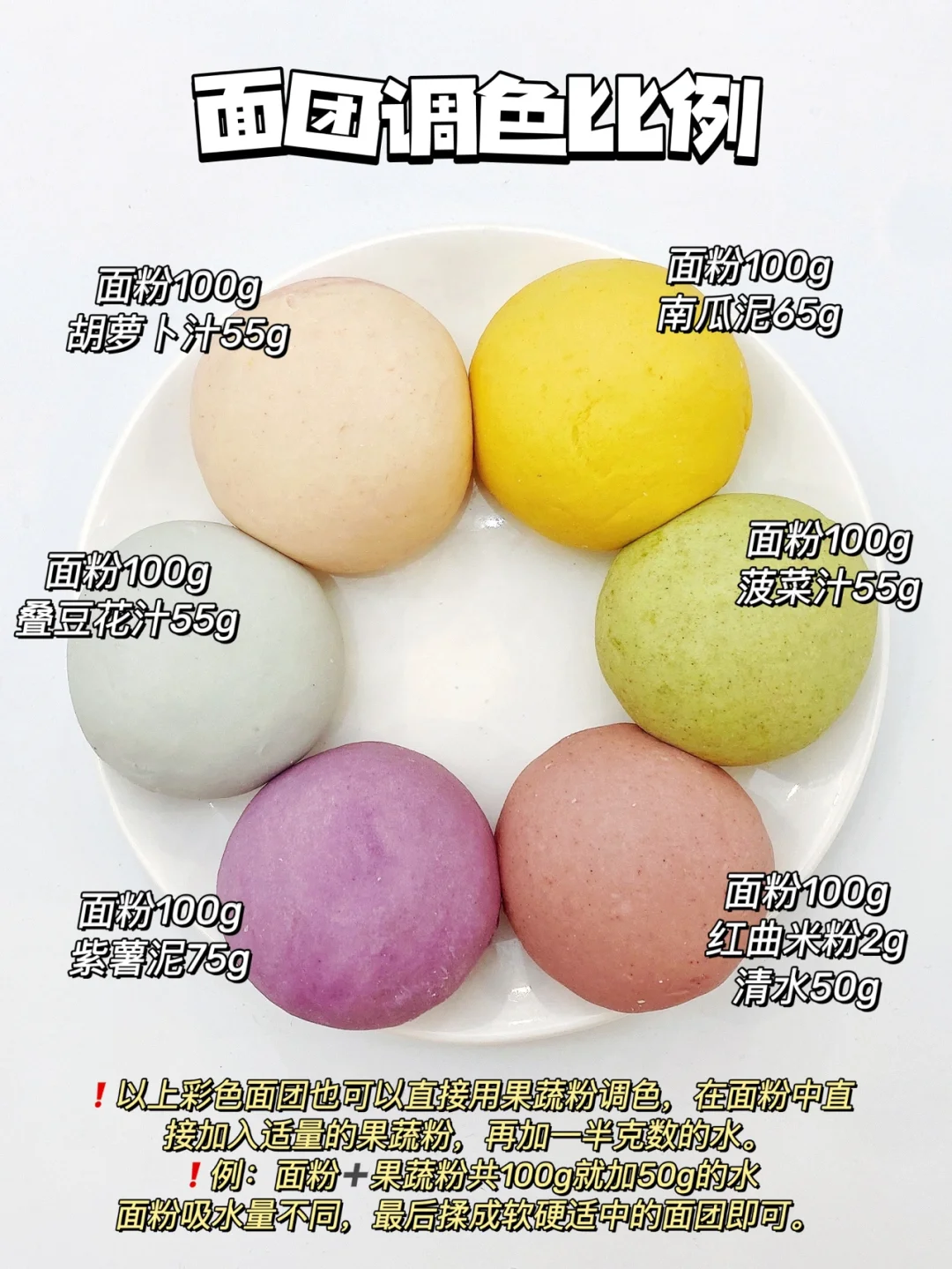 ☑️个人建议如果只做一种颜色的面团可以用蔬菜榨汁和面,如果一下要做多种颜色的面团,还是用蔬菜粉揉面更佳方便一些。
