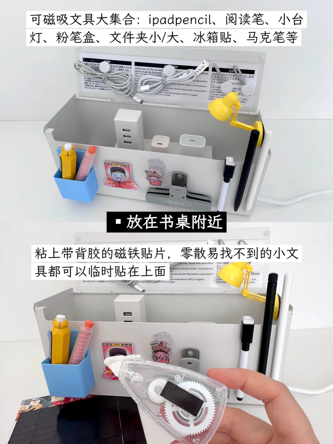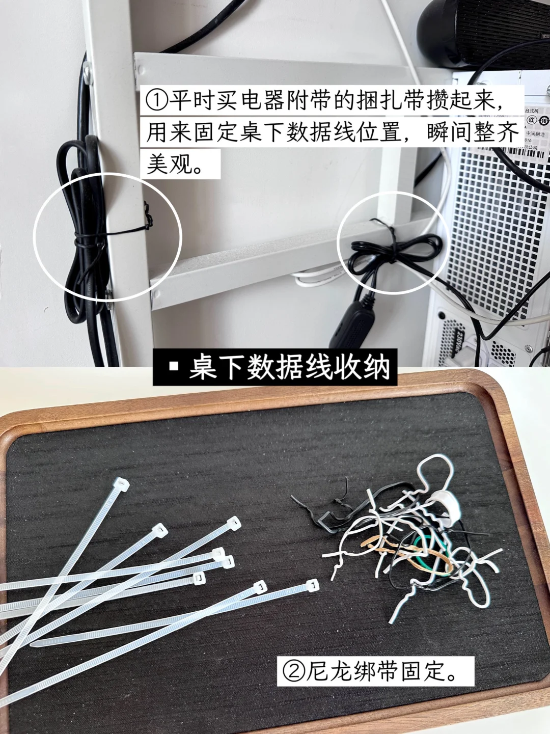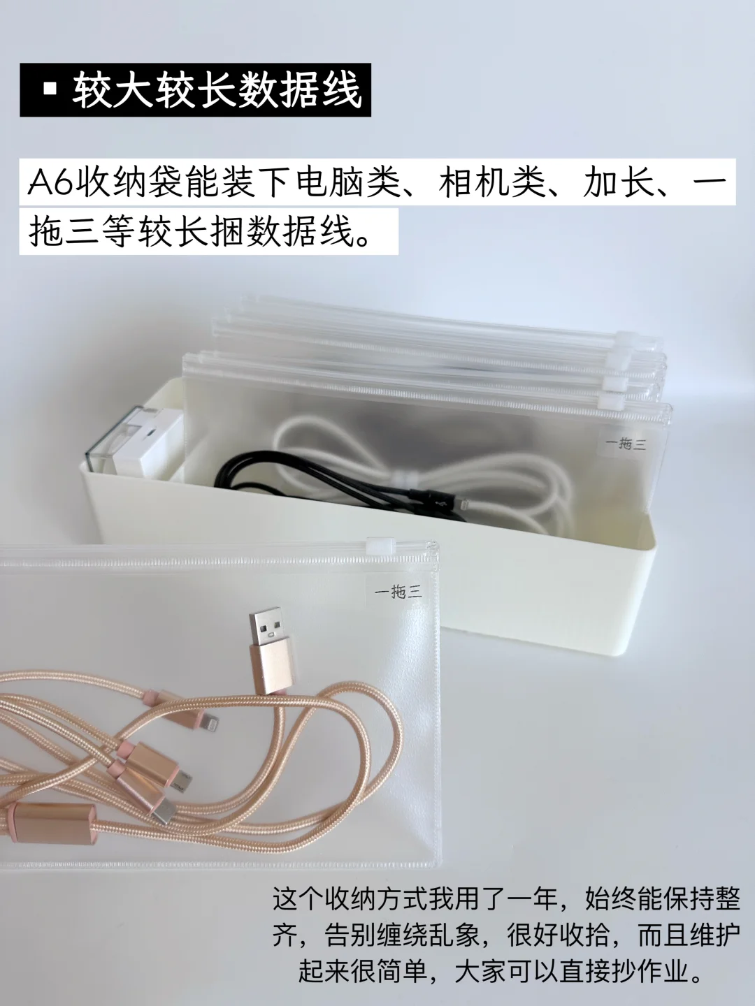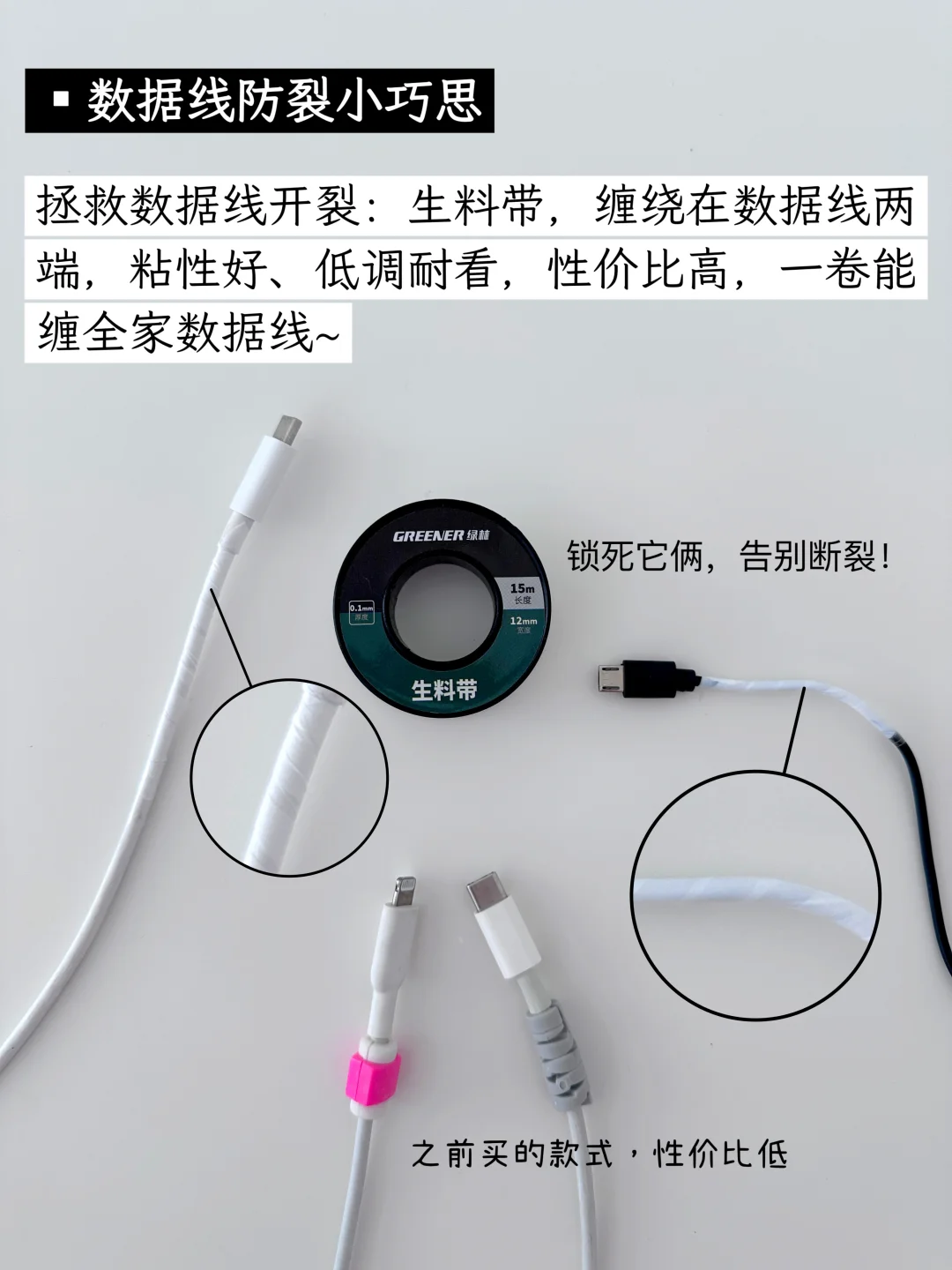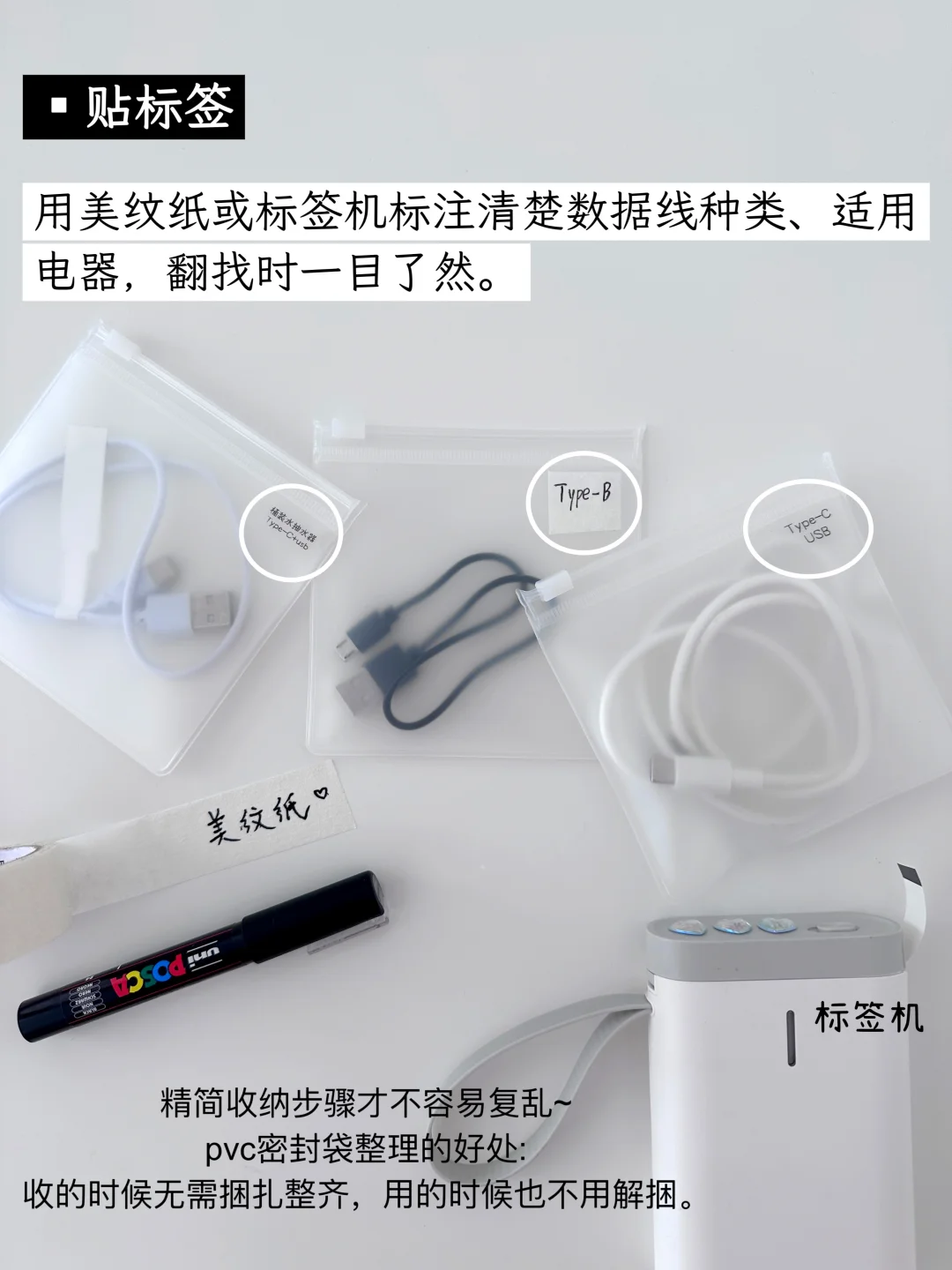 之前我家在书桌、床头、沙发边、餐桌旁的各种数据线总能缠成“盘丝洞”,书桌里全部数据线虽然用魔术贴扎带都一一缠绕整理过了,但是每次找数据线都要翻找好久。现在经过整理全屋数据线,终于找到了超适合的极简全屋数据线收纳方法,整个人都舒坦了哈哈~ 极简J人的全屋数据线收纳方案: [红色心形R]一.可视化收纳 精简收纳步骤才不容易复乱~ 普通尺寸数据线用透明PVC拉链袋装好,一袋一根,贴上标签,好拿、好取、好放回,还不用理线。收的时候无需捆扎整齐,用的时候也不用解捆。 这个收纳方式我用了一年,始终能保持整齐,告别缠绕乱象,很好收拾,而且维护起来很简单,大家可以直接抄作业。 [黄色心形R]二.两种插排收纳盒 1.原木极简:耐看、与家居风格相搭配、存在感低。 2.极简铁艺:简约、干净、实用的两款插排收纳盒。 每一面都可磁吸,极大提高了利用率。底部粘贴4个mini万向轮,滑动很丝滑,使用更方便咯!粘上带背胶的磁铁贴片,零散易找不到的小文具都可以临时贴在上面。 [绿色心形R]三.数据线固定器 [蓝色心形R]四.数据线防裂小巧思 拯救数据线开裂:生料带,缠绕在数据线两端,粘性好、低调耐看,性价比高,一卷能缠全家数据线~ [紫色心形R]五.数据线收纳踩过的坑 1.绑带:绑起来麻烦,放在一起凌乱,找起来更困难; 2.分隔收纳盒:过长的数据线放不下,理线过程很烦躁; 3.单独包装塑料小盒:太占空间,性价比极低; 4.数据线贴标签:在一大堆数据线里翻找想用的那根依然很困难,粘性不足,会在线上滑动,数据线也黏糊糊的。 我是小哈娜,分享简单生活和精致好物。 谢谢你的时间,下次见~ 极简生活 极简主义 极简 数据线 数据线收纳 我的收纳分享 收纳好物分享 生活小妙招 收纳小妙招 你家数据线收拾的整齐好拿取吗?