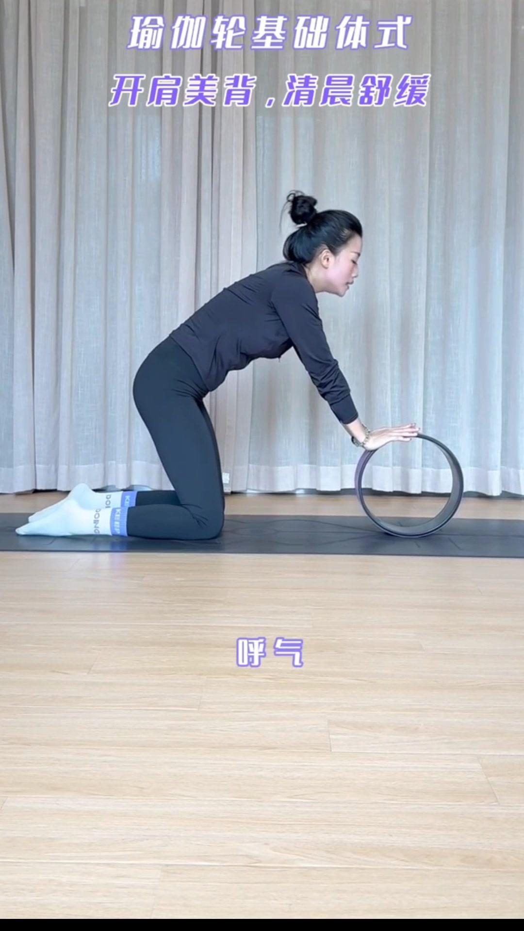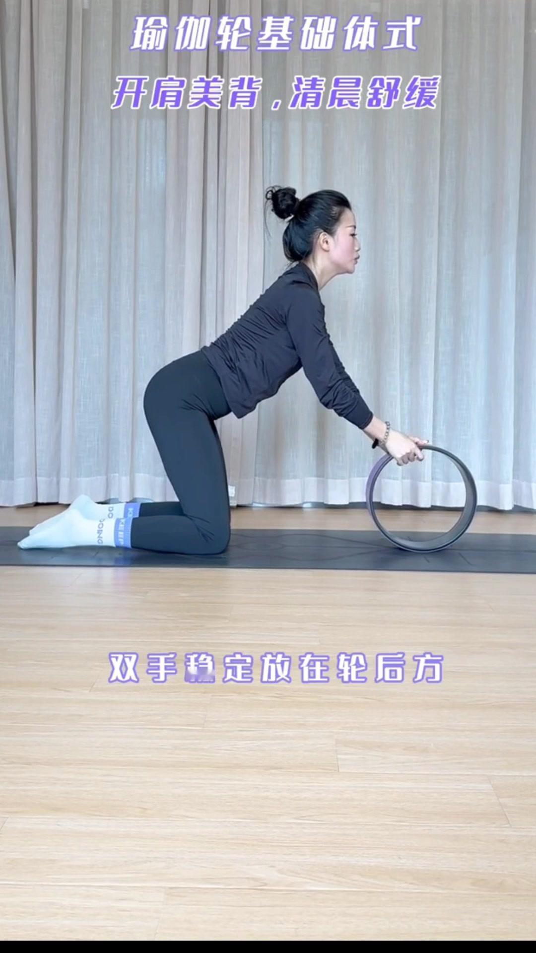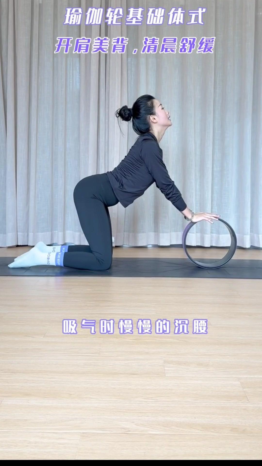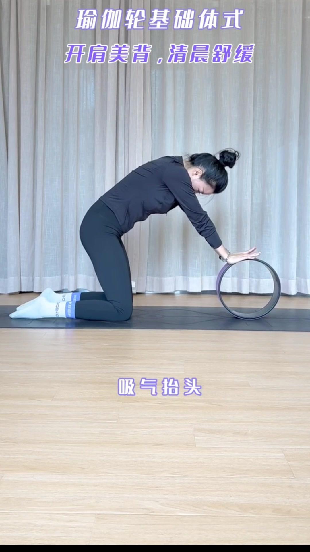 🌅每天提前5分钟起床,跟着视频做一遍,用瑜伽唤醒沉寂的身体,开启新一天。 1️⃣双手扶住瑜伽轮,吸气时慢慢沉腰提臀,抬头来到猫式。 2️⃣呼气时手臂撑轮拱背,低头卷尾骨。 3️⃣再次吸气,呼气,吸气抬头,321呼气,最后一组。 4️⃣吸气抬头,呼气,在原地停留三个呼吸,让背部继续拎高,尾骨继续向内扣。 5️⃣321吸气,慢慢回到原来的位置。 6️⃣双手稳定放在轮后方,脚尖回勾,吸气时蹬直双腿,坐骨向后向上,来到下犬式。 7️⃣上下踩动,拉伸小腿,保持脊背向下延展,坐骨拎高。