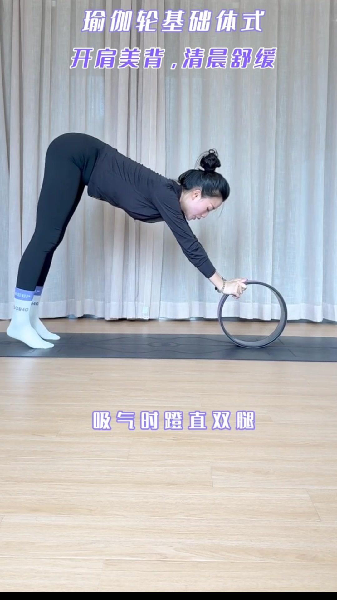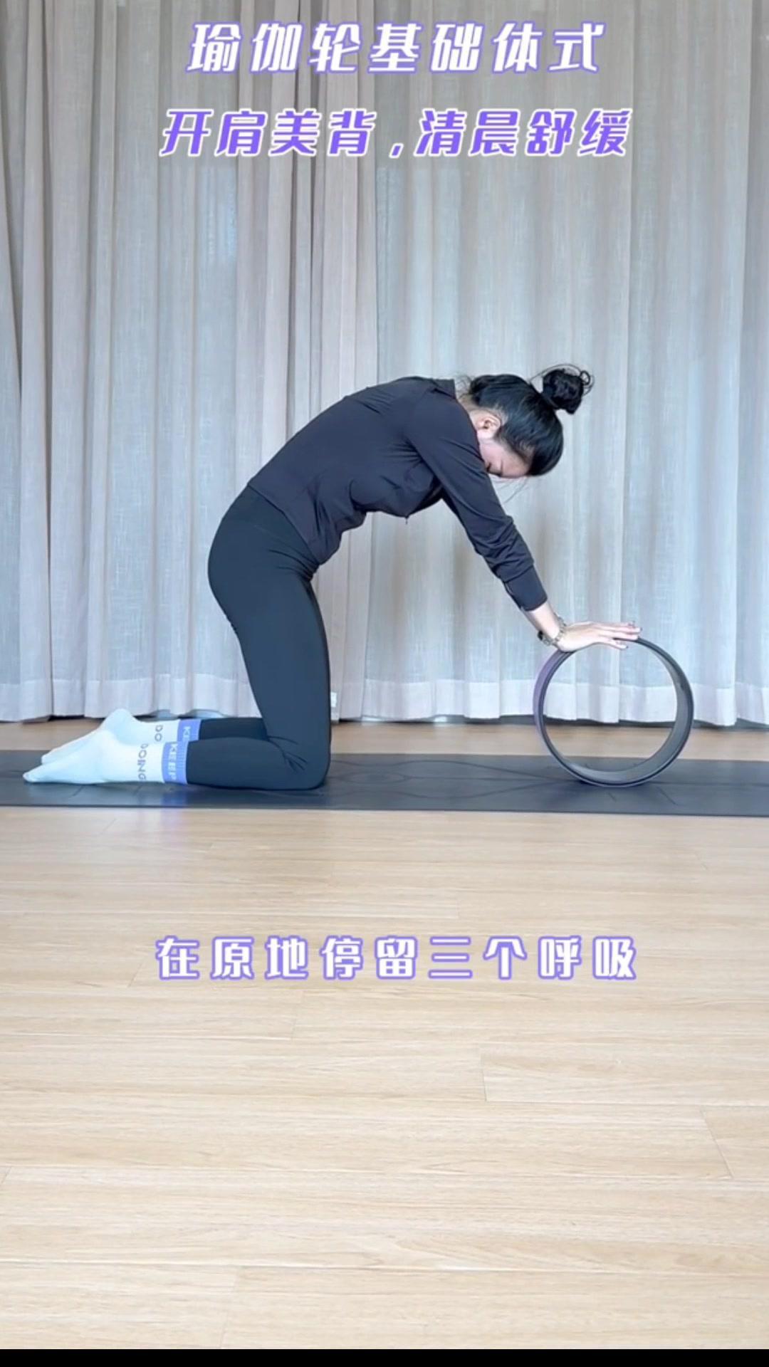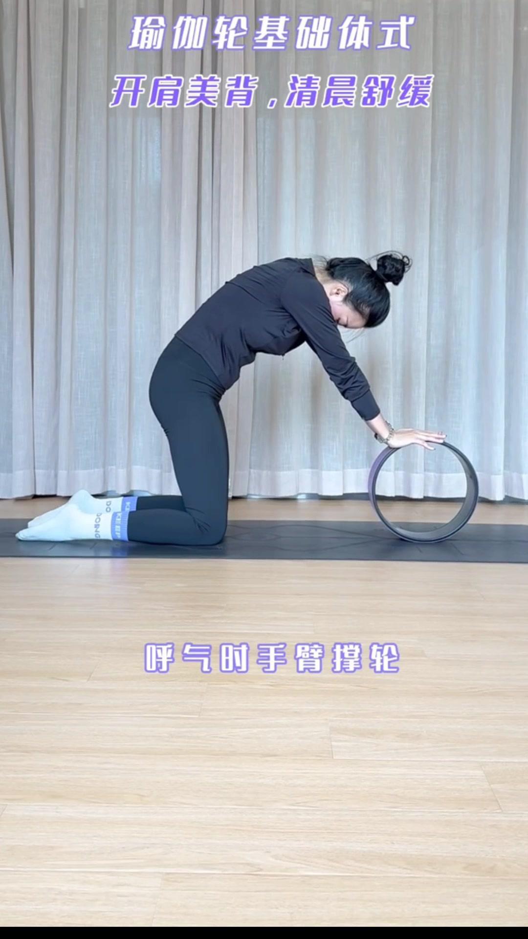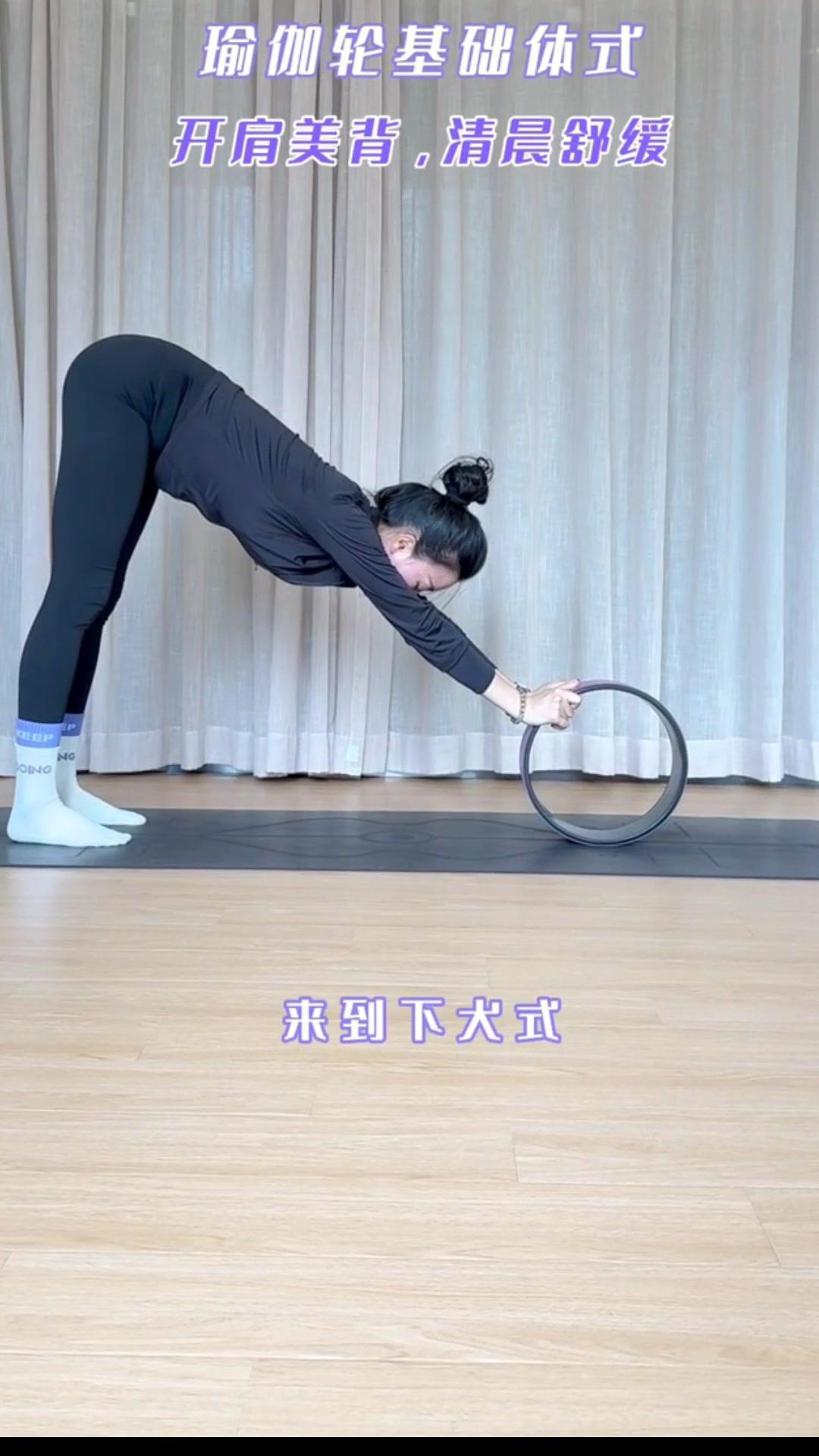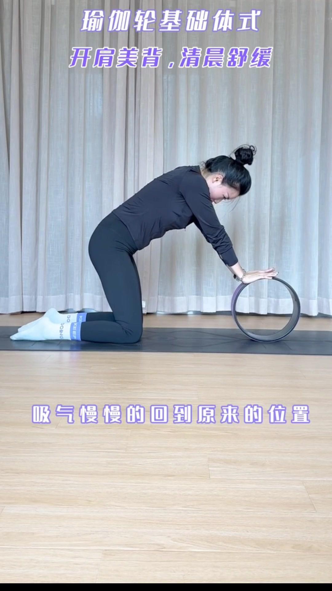🌅每天提前5分钟起床,跟着视频做一遍,用瑜伽唤醒沉寂的身体,开启新一天。 1️⃣双手扶住瑜伽轮,吸气时慢慢沉腰提臀,抬头来到猫式。 2️⃣呼气时手臂撑轮拱背,低头卷尾骨。 3️⃣再次吸气,呼气,吸气抬头,321呼气,最后一组。 4️⃣吸气抬头,呼气,在原地停留三个呼吸,让背部继续拎高,尾骨继续向内扣。 5️⃣321吸气,慢慢回到原来的位置。 6️⃣双手稳定放在轮后方,脚尖回勾,吸气时蹬直双腿,坐骨向后向上,来到下犬式。 7️⃣上下踩动,拉伸小腿,保持脊背向下延展,坐骨拎高。