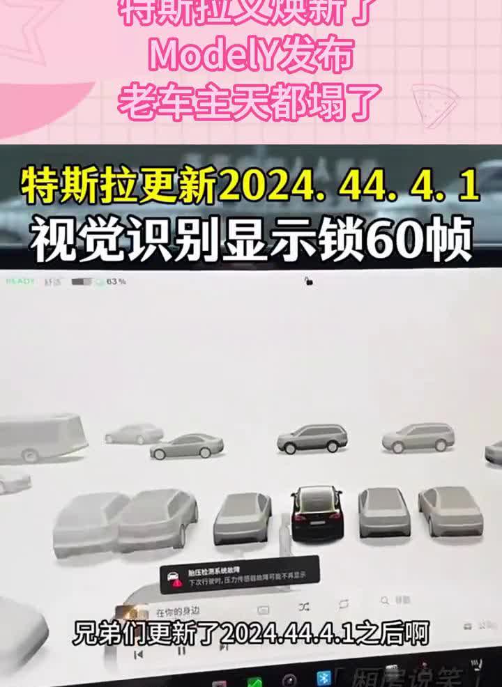 特斯拉又焕新了,Model Y发布,老车主天都塌了。 特斯拉更新2024.4.4.1之后,车机动画太流畅了,现在是60帧的。现在车过来了,特别顺滑。兄弟们,现在又来车了。
