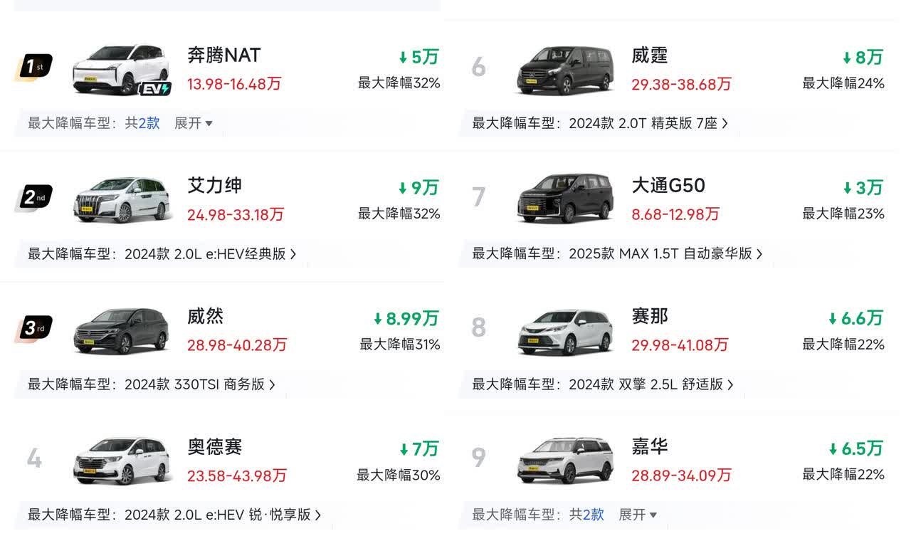有点惨!9月MPV开启“大降价”,最高让利32%,合资车集体大跳水