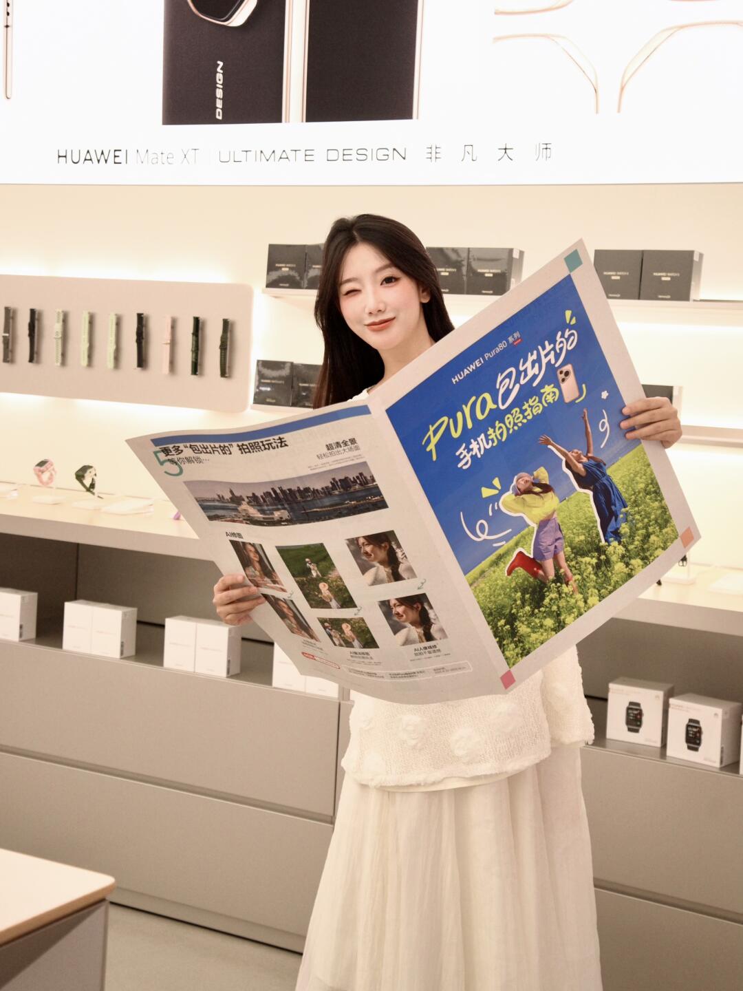 华为门店还为我们精心准备了出片教程报纸和毛绒绒憨憨的贴纸~