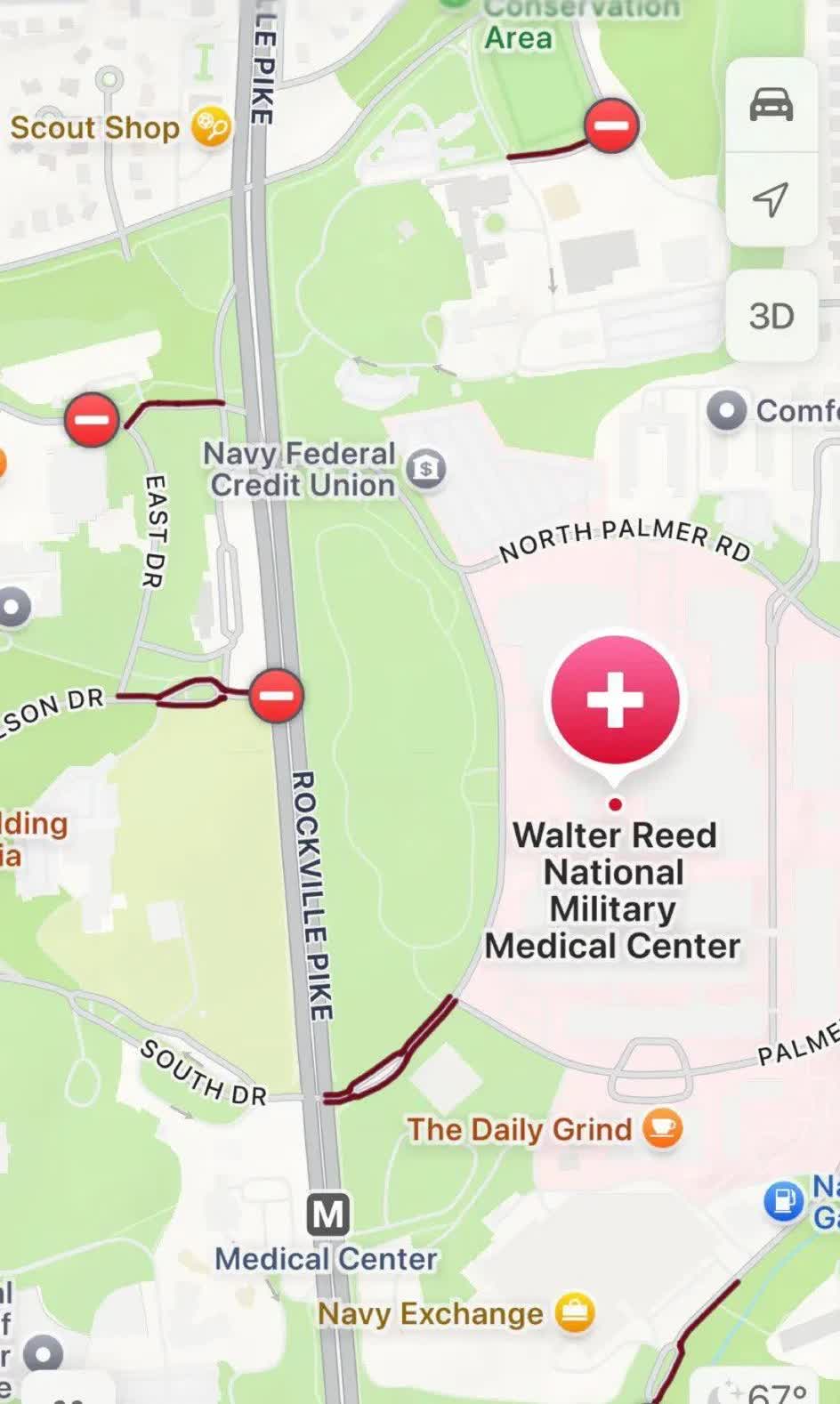 白宫将于9月2日下午2点宣布,所有通往沃尔特里德医院的道路关闭。