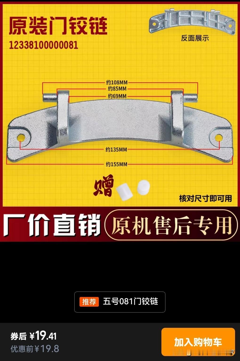 滚筒洗衣机坏了,老婆要找维修服务,我检查发现是铰链断裂导致门关不严。 这种问题对结构工程师来说小事一桩。 拆卸门板取下铰链,发现是压脚断掉一边,网购回同型号铰链换上。 洗衣机完美修复。 过程中发现原厂的铰链质量很差,铝合金压铸件密度低还有很多杂质(难怪会断裂),而网购的19元多的配件既沉又结实,质量好很多。 维修一下洗衣机,发现问题:坊间流传品牌商品特意用劣质配件,目的是给售后维修留后门,庞大的售后市场,既能给相关人员留口饭吃,又能维护品牌形象(坏的大部分是辅助配件,主机没问题。)[大笑] 哥德巴赫猜想:留售后市场后门! 是否真是这样?大家说说看呢!洗衣机 美的