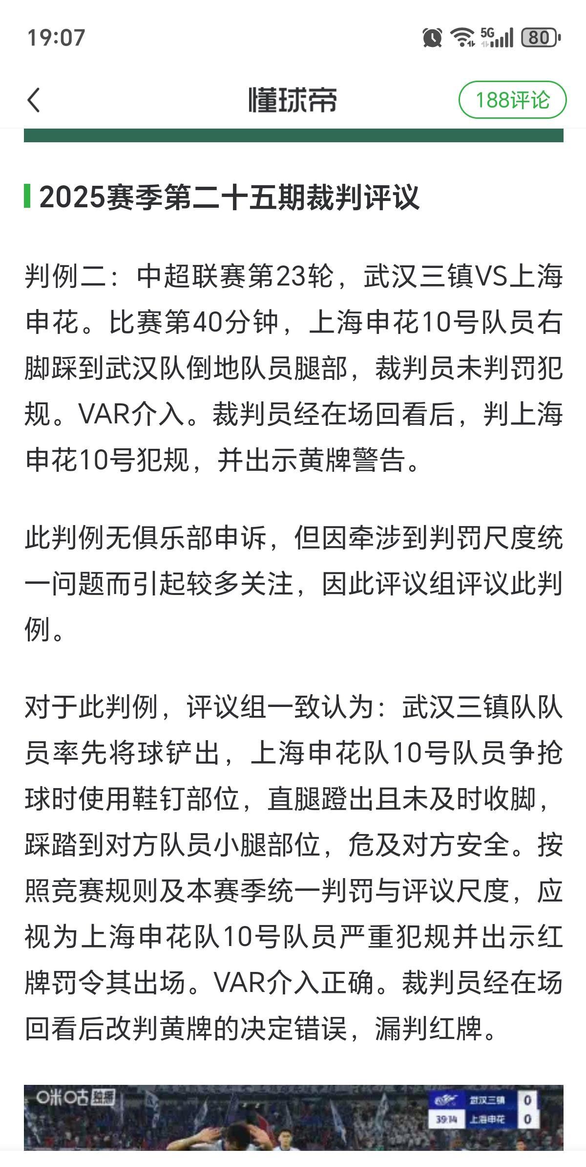 不是泰山的比赛,泰山队却吃裁判的亏! 足协评议组宣布上轮申花特谢拉应该被红牌罚下!而特谢拉这个动作,和第一轮申花蒋圣龙犯规基本相同,而且两个犯规,都是主裁判看了VAR后,出示的黄牌!赛后足协评议组却评议为红牌,属于错判,这里边就有问题了,是裁判业务水平问题吗? 第二,特谢拉若当时被出示红牌,那么不仅仅接下来踢泰山队上不了,因为他是赛季第二张红牌,再下一场踢蓉城也上不了,所以这个误判,对争冠可能产生实质性影响!#中超# #上海申花#