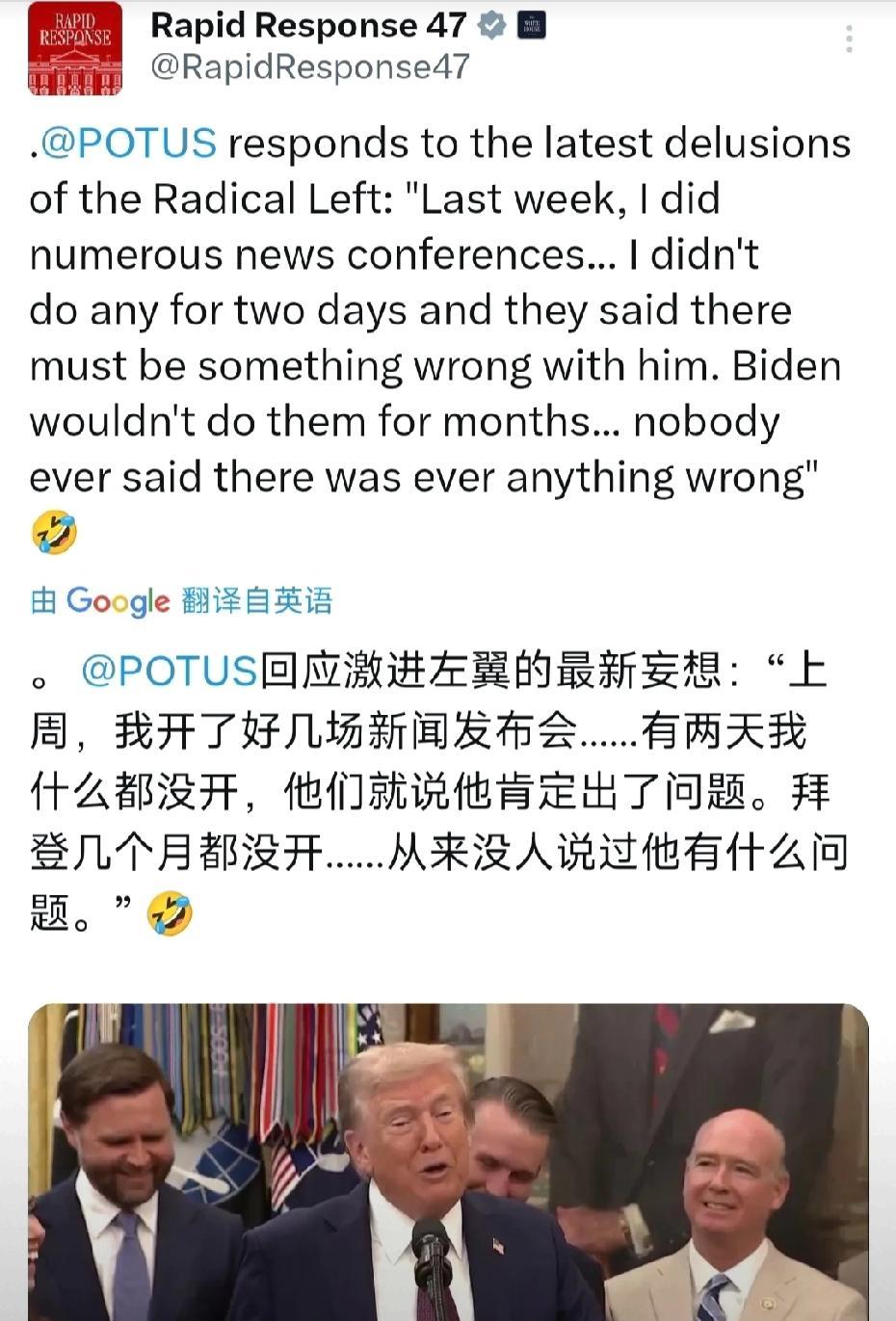 九三活动结束后,川普一口气说3个不,美防长:以史无前例的方式行动 在全球的两极格局下,中方的一举一动都被受大西洋彼岸的美国看在眼里,九三活动结束后,东风-61跨级式升级,东风-5C的“全球覆盖”不仅仅是网络热频词,更引发了美方的一连串动作。 比如,综合美媒及环球网消息显示,“消失”3天的川普,在白宫被问及九三活动是否是“对美国的挑战”时,特朗普一口气说了3个不。 这里另外说个题外话,他当天还就手上的淤青及身体问题,否认了外界的说法(图三) 言归正传,想想看,一个人在什么情况下会对一个问题连续给予否认? 紧张?慌了?或许每一个都有自己的答案,我认为是,很多重器及像舰载激光武器这样的未来装备亮相,是西方最忧心忡忡的。 于此同时,我们看到,福克斯新闻频道对赫格塞思的采访,新闻画面显示,川普在9月3日当天,已经下令要五角大楼对美军进行史无前例的重组,重振美军士气。 但,他同时也表示,美方不寻求与中方发生冲突,这一定是确定的。 综合来看,这种自相矛盾的做法,是刻意弱化对抗色彩,在我看来,这本身就是自寻烦恼,我们的利剑从不针对第三方,而是针对意图军事冒险者的威慑。 应该紧张的是那些有非分之想的人,难道美方承认这一点?